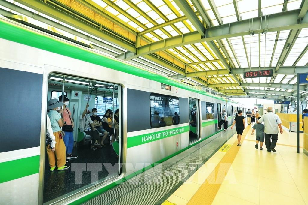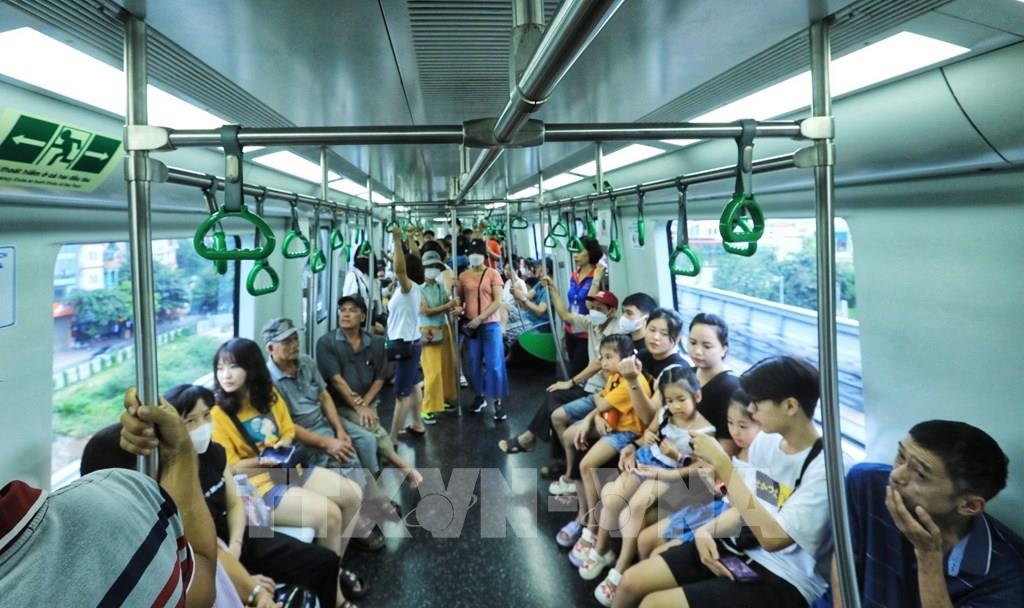 Đông đảo người dân trải nghiệm tuyến tàu điện Cát Linh - Hà Đông. Ảnh: Tuấn Anh - TTXVN