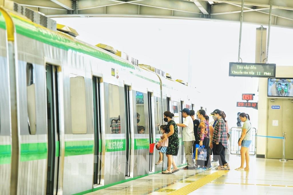 Hành khách lên, xuống tại các nhà ga. Ảnh: Tuấn Anh - TTXVN