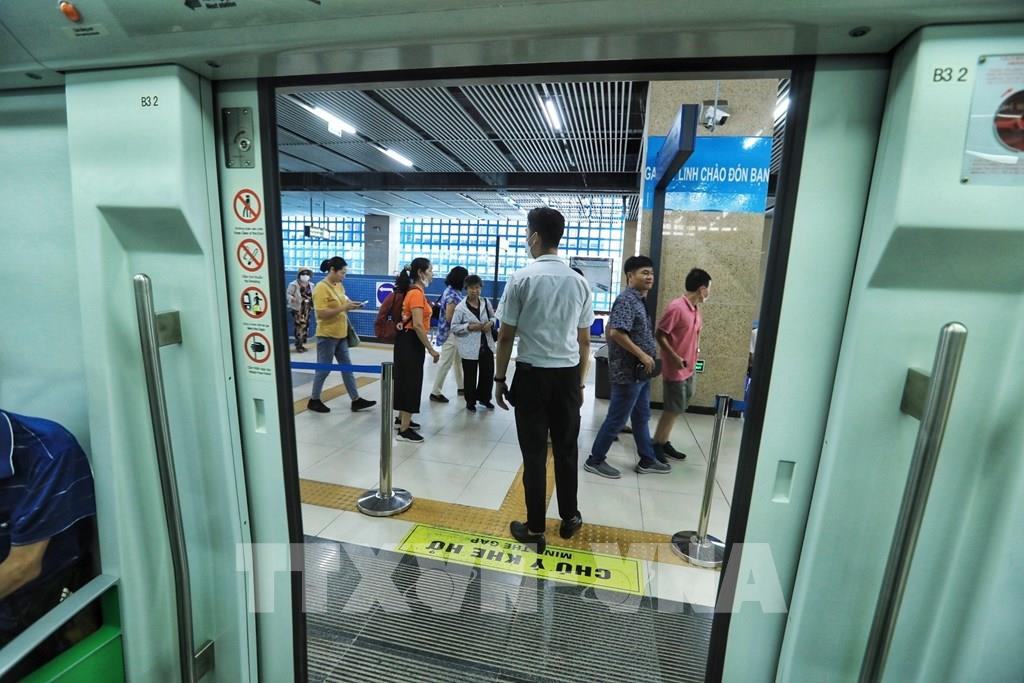 Tại các nhà ga đều có nhân viên hướng dẫn đảm bảo an toàn cho hành khách. Ảnh: Tuấn Anh - TTXVN
