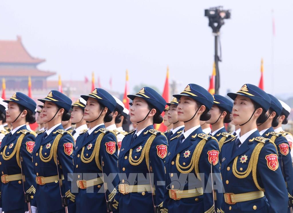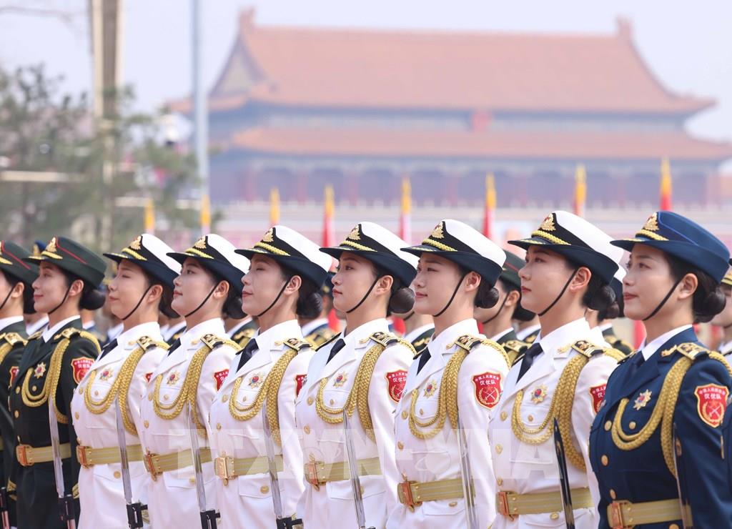 Đội danh dự Quân giải phóng Nhân dân Trung Quốc tại Lễ đón. Ảnh: Thống Nhất – TTXVN