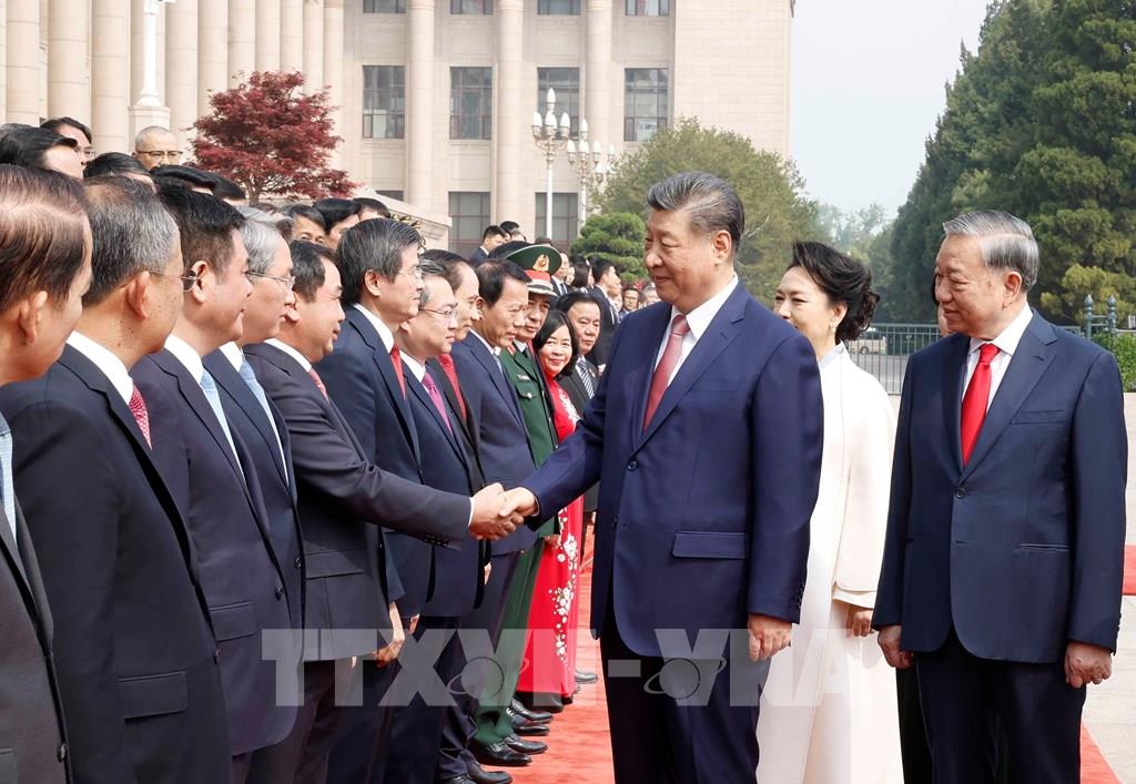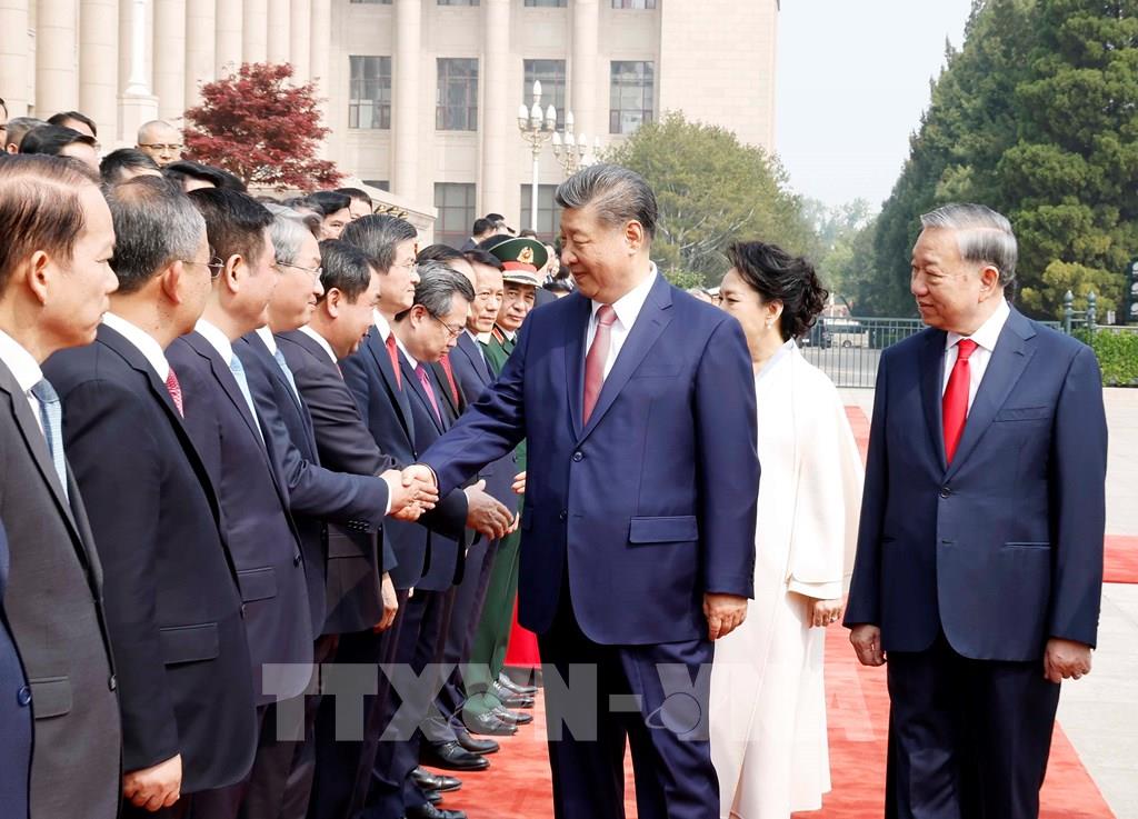 Tổng Bí thư, Chủ tịch nước Trung Quốc Tập Cận Bình và Phu nhân đón Tổng Bí thư, Chủ tịch nước Tô Lâm và Phu nhân. Ảnh: Thống Nhất – TTXVN