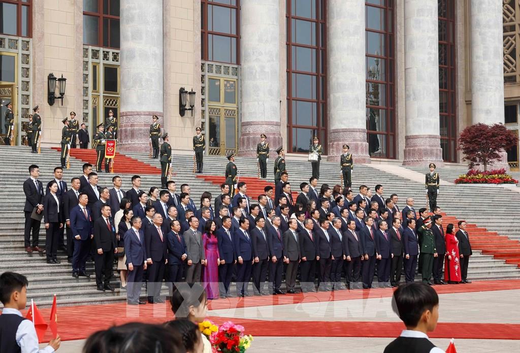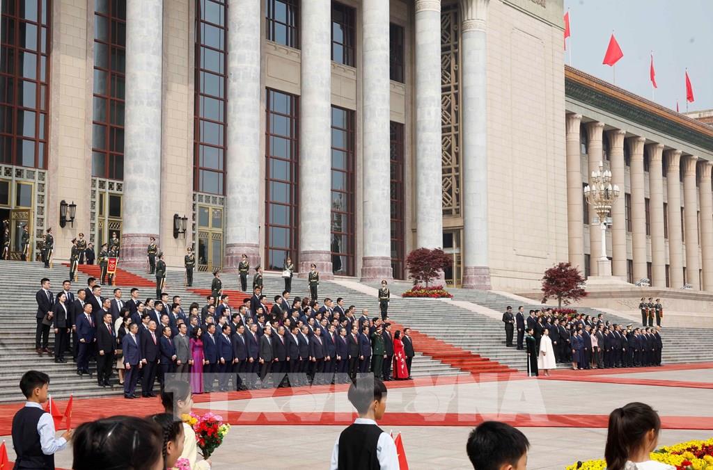 Đoàn đại biểu cấp cao Việt Nam tham dự Lễ đón. Ảnh: Thống Nhất – TTXVN