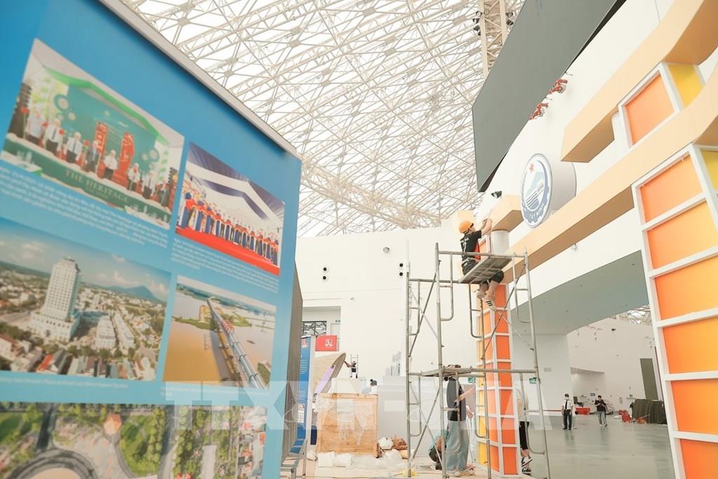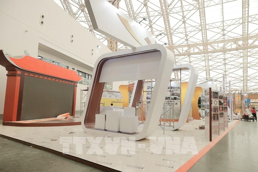Các gian triển lãm của các bộ, ngành, địa phương,... đang được gấp rút hoàn thiện. Ảnh: Minh Quyết - TTXVN