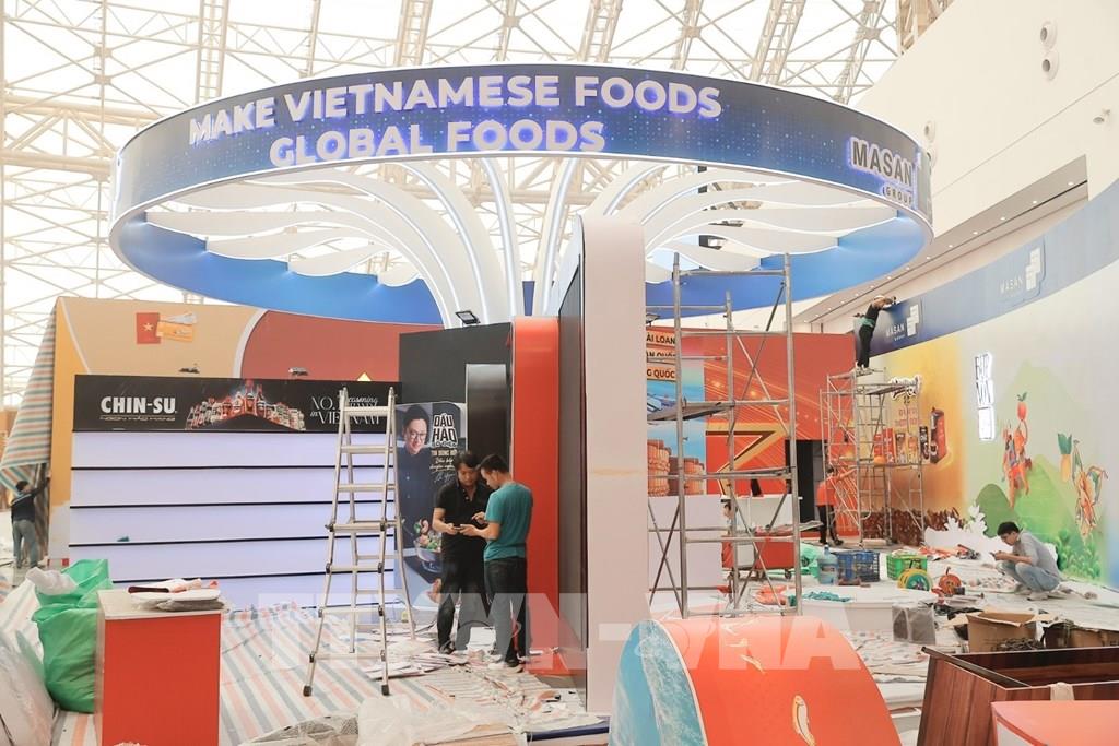Các gian trưng bày đang được gấp rút hoàn thiện. Ảnh: Minh Quyết - TTXVN