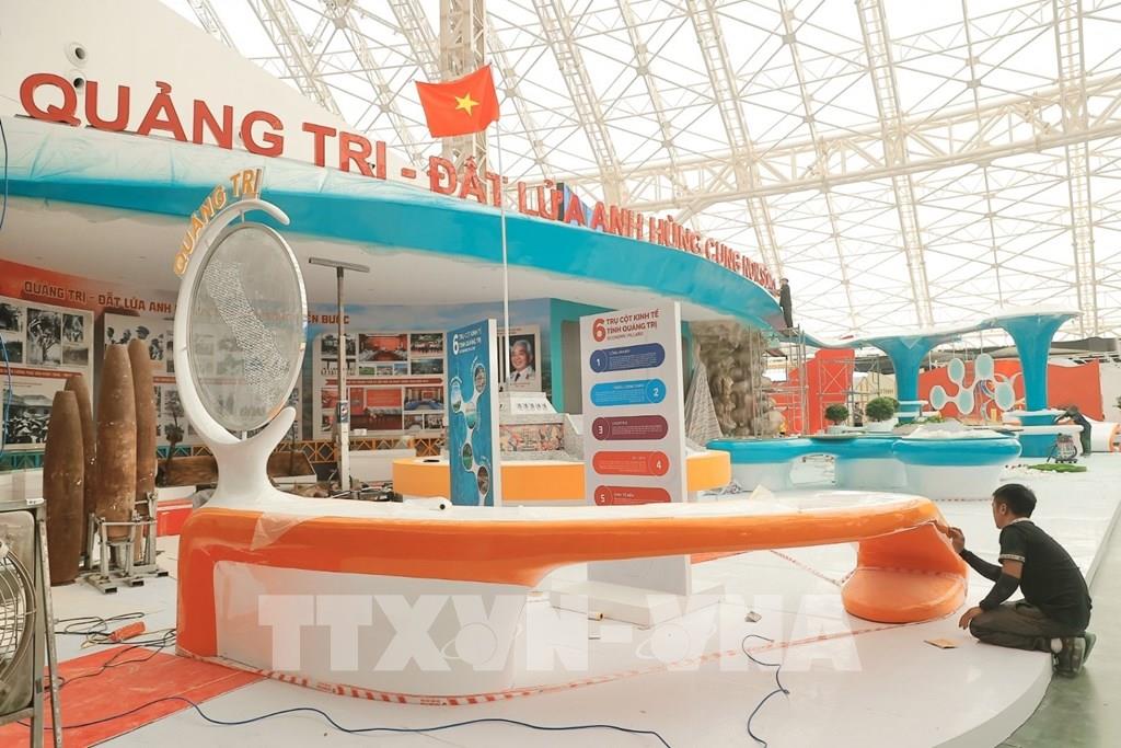 Các hạng mục của khu triển lãm thành tựu tỉnh Quảng Trị đang được gấp rút hoàn thiện. Ảnh: Minh Quyết - TTXVN