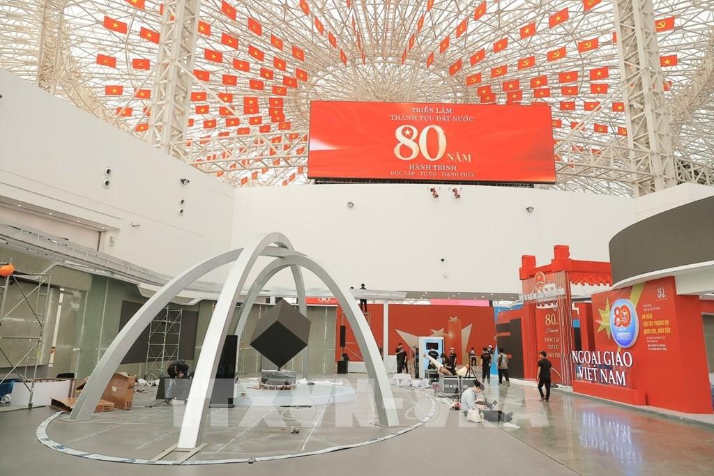 Các hạng mục của Triển lãm thành tựu đất nước nhân dịp kỷ niệm 80 năm Quốc khánh đang được gấp rút hoàn thiện. Ảnh: Minh Quyết - TTXVN