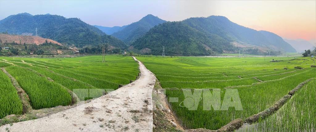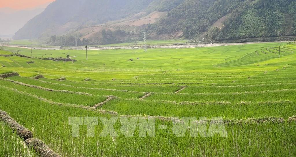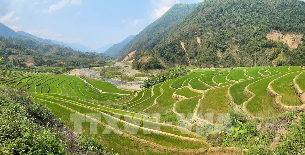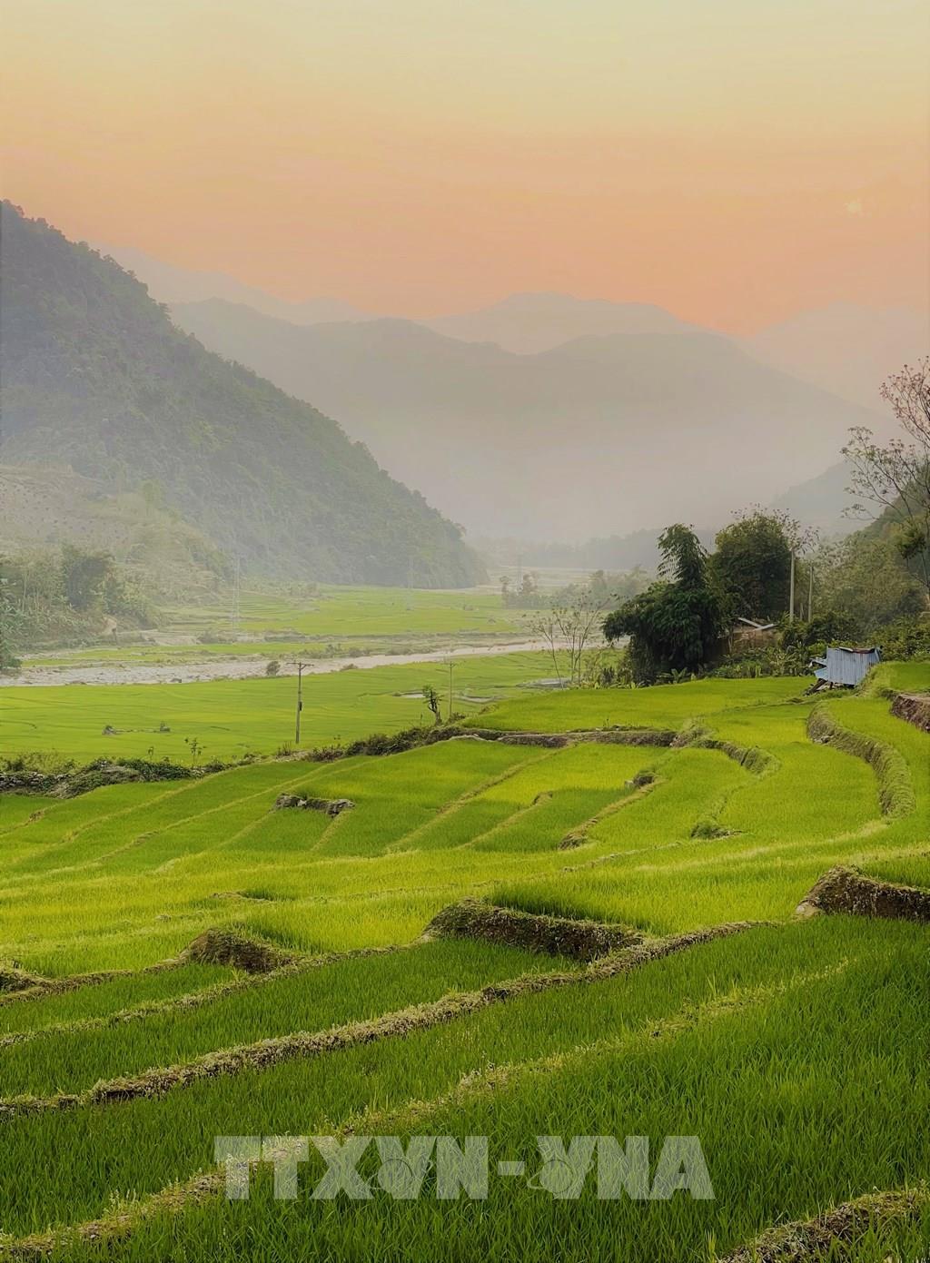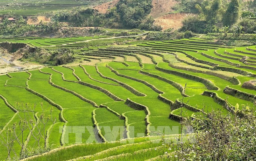 08:39' - 12/03/2021Những thửa ruộng bậc thang ở các bản làng của huyện vùng cao biên giới Mường Tè (Lai Châu) đang mùa mạ non. Màu xanh của lúa trải dài trong cái nắng chiều khiến khung cảnh vùng biên giới càng thêm bình yên, tươi đẹp.