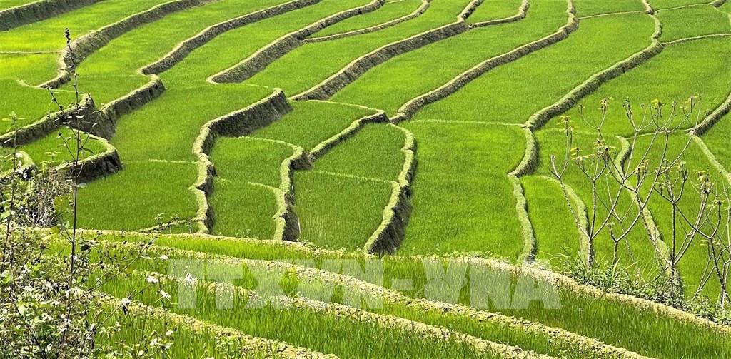 Vẻ đẹp của ruộng bậc thang mùa mạ non nơi biên giới