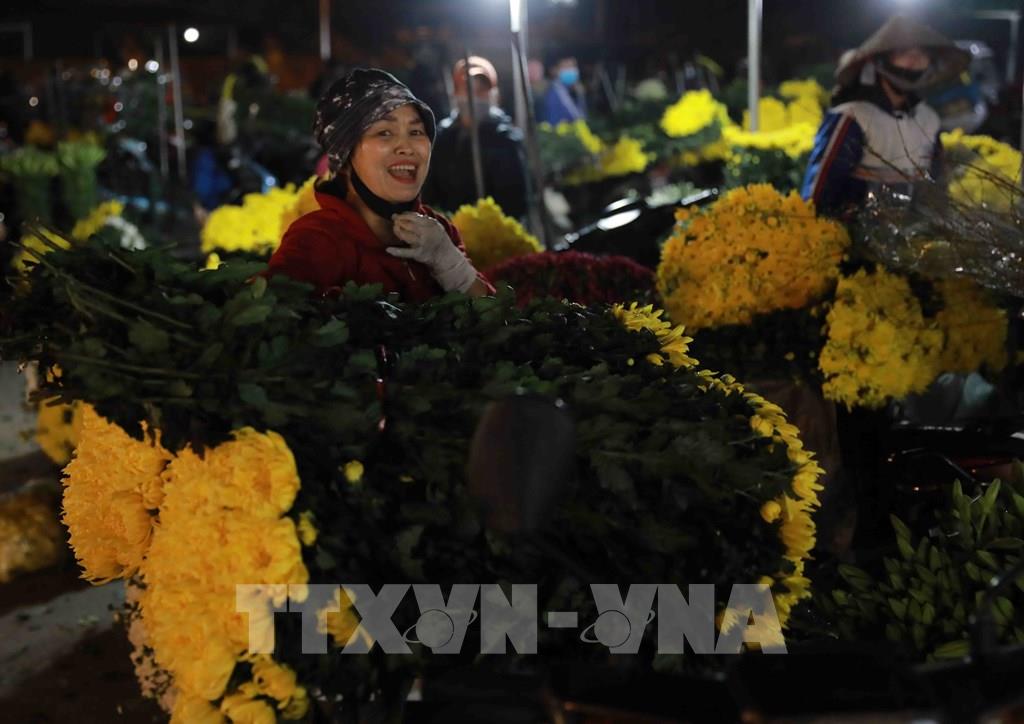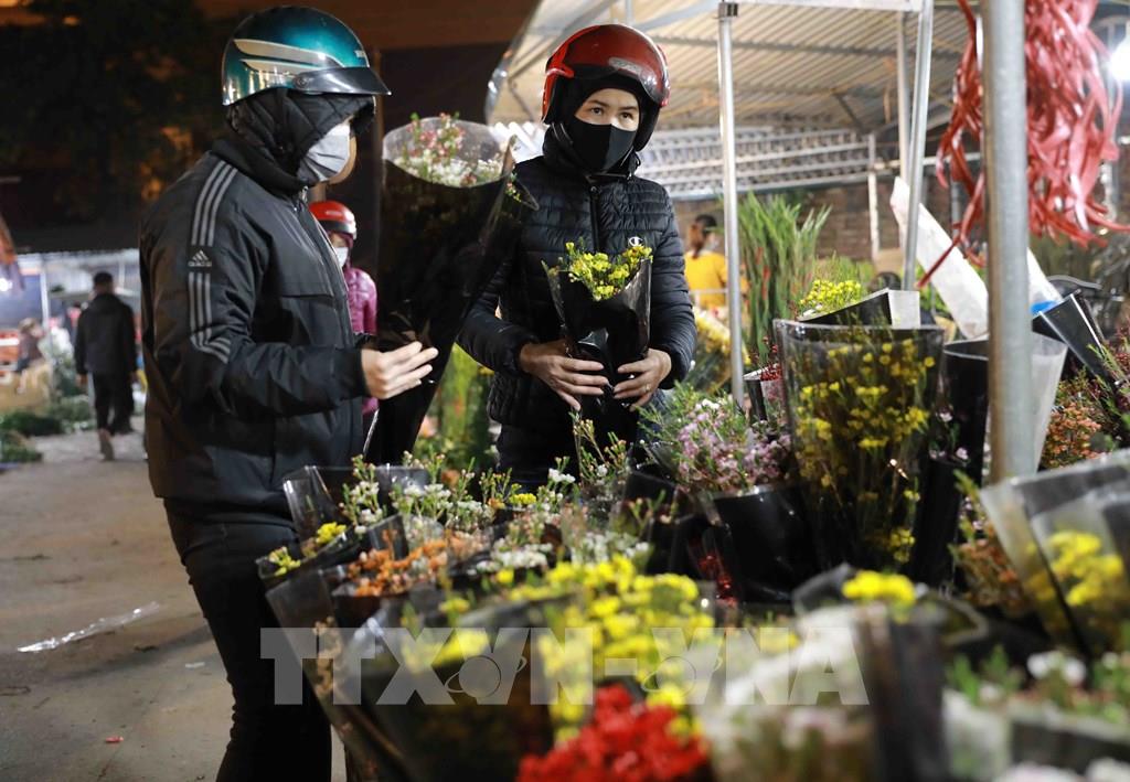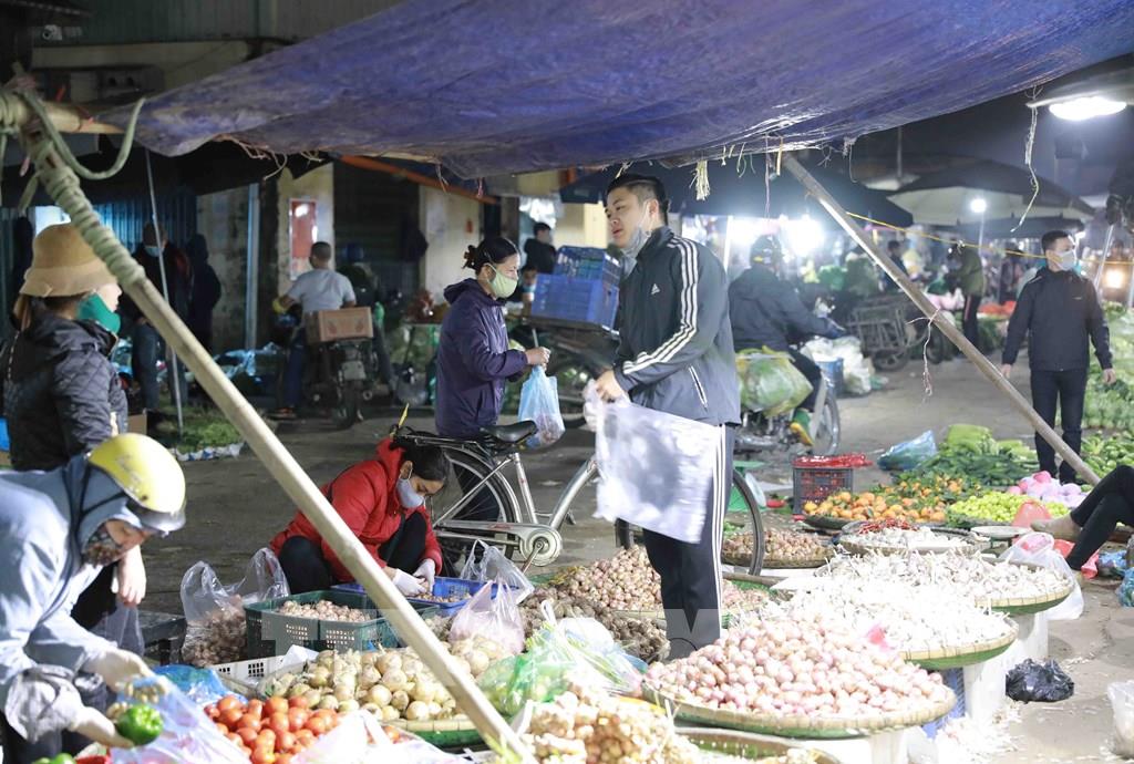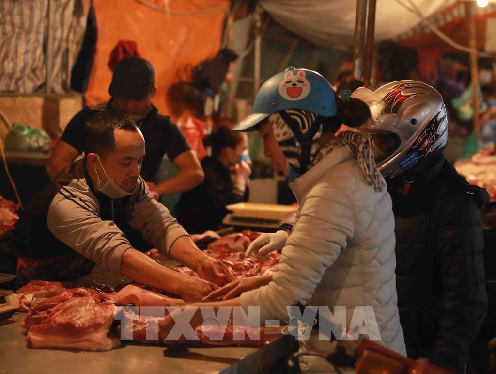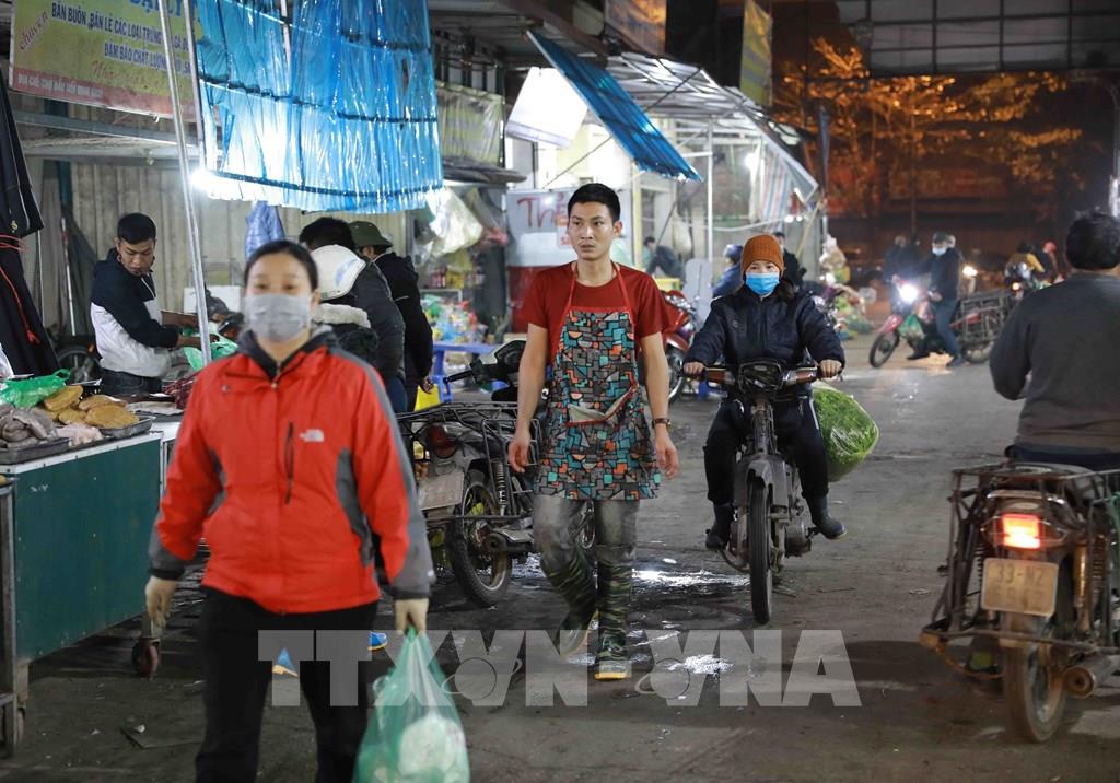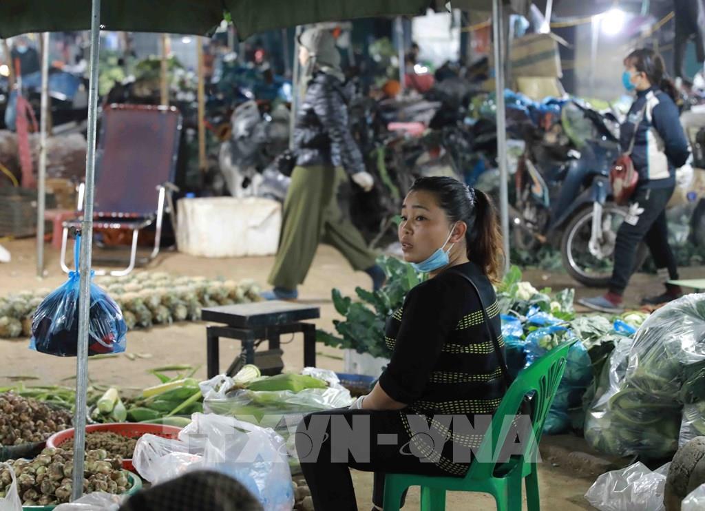 Người dân đến mua sắn tại chợ thực hiện nghiêm túc việc đeo khẩu trang để phòng chống dịch bệnh. Ảnh: Vũ Sinh - TTXVN