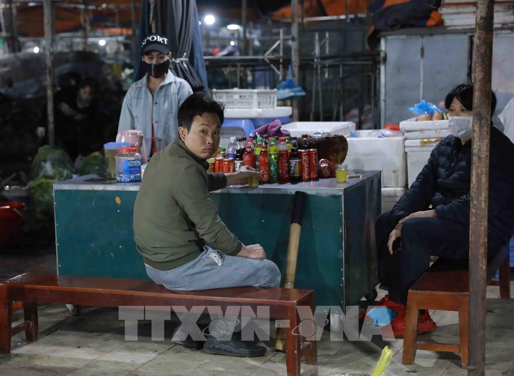 Ý thức chấp hành của một số người dân và tiểu thương kinh doanh tại chợ vẫn còn chưa cao trong việc đeo khẩu trang phòng chống dịch bệnh. Ảnh: Vũ Sinh - TTXVN (Ảnh chụp sáng 31/1/2021)