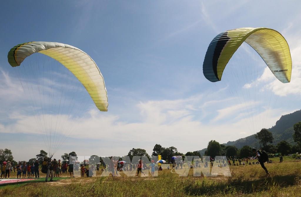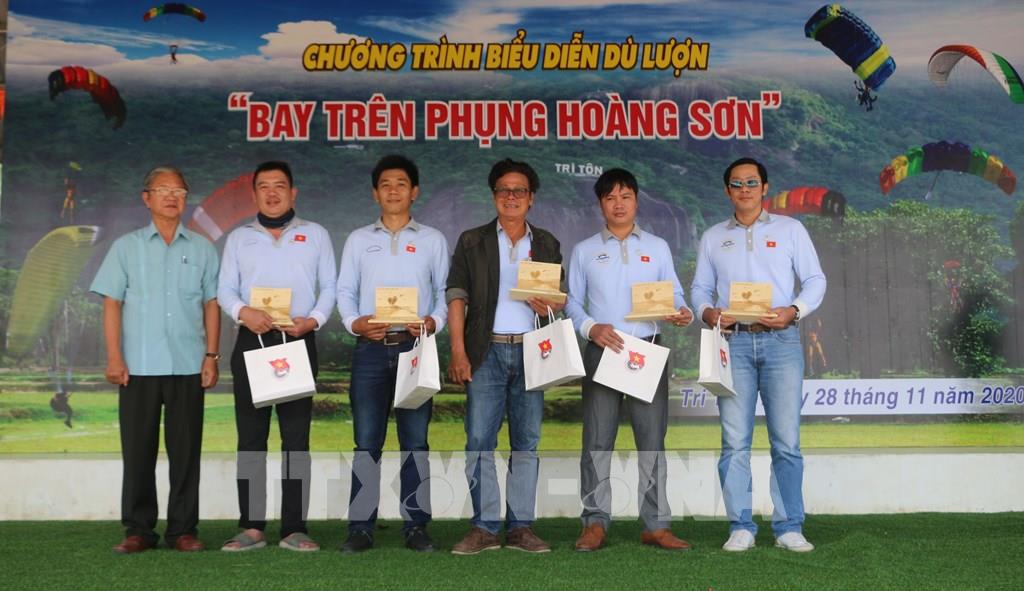 10:48' - 05/12/2020UBND huyện Tri Tôn (An Giang) vừa phối hợp với Hội Dù lượn Thành phố Hà Nội tổ chức chương trình biểu diễn dù lượn với chủ đề “Bay trên Phụng Hoàng Sơn” tại hồ Soài Chek, thuộc ấp Tô Hạ, xã Núi Tô. Tại sự kiện này có hàng nghìn du khách được chứng kiến hơn 90 phi công trình diễn dù lượn rất hấp dẫn, ấn tượng đến từ các câu lạc bộ Dù lượn trong cả nước và tạo cơ hội cho du khách được trải nghiệm, khám phá, thưởng thức vẻ đẹp hùng vĩ của vùng Bảy Núi An Giang với những thửa ruộng óng ánh mùa vàng.