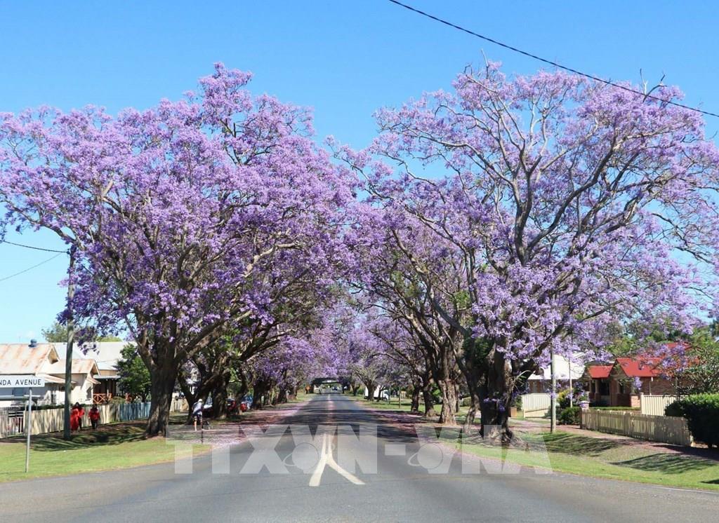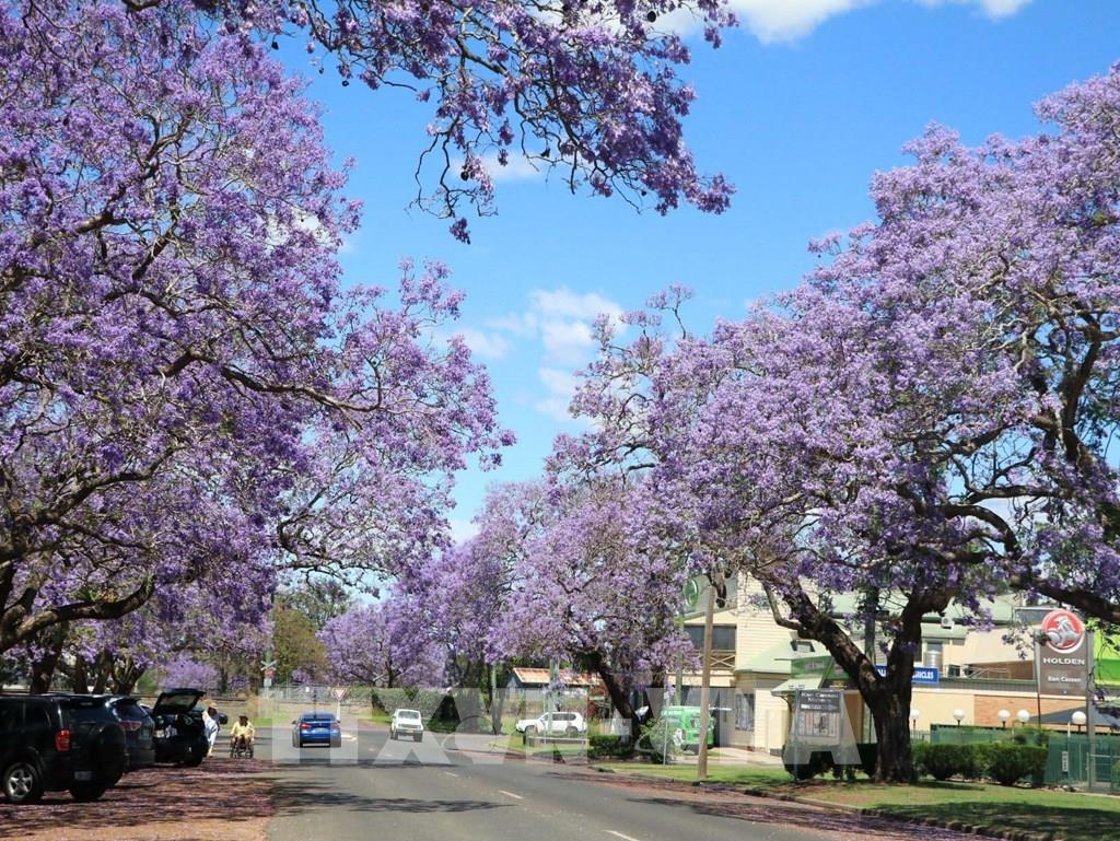 10:18' - 02/11/2020Hàng năm, vào dịp cuối tháng 10 đến đầu tháng 11, hàng trăm cây phượng tím lại nở rộ dọc theo các con phố của thị trấn nhỏ Grafton, thung lũng Clarence, bang New South Wales, Australia, tạo ra một khung trời tím biếc tuyệt đẹp.
