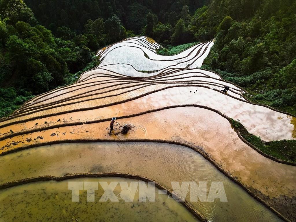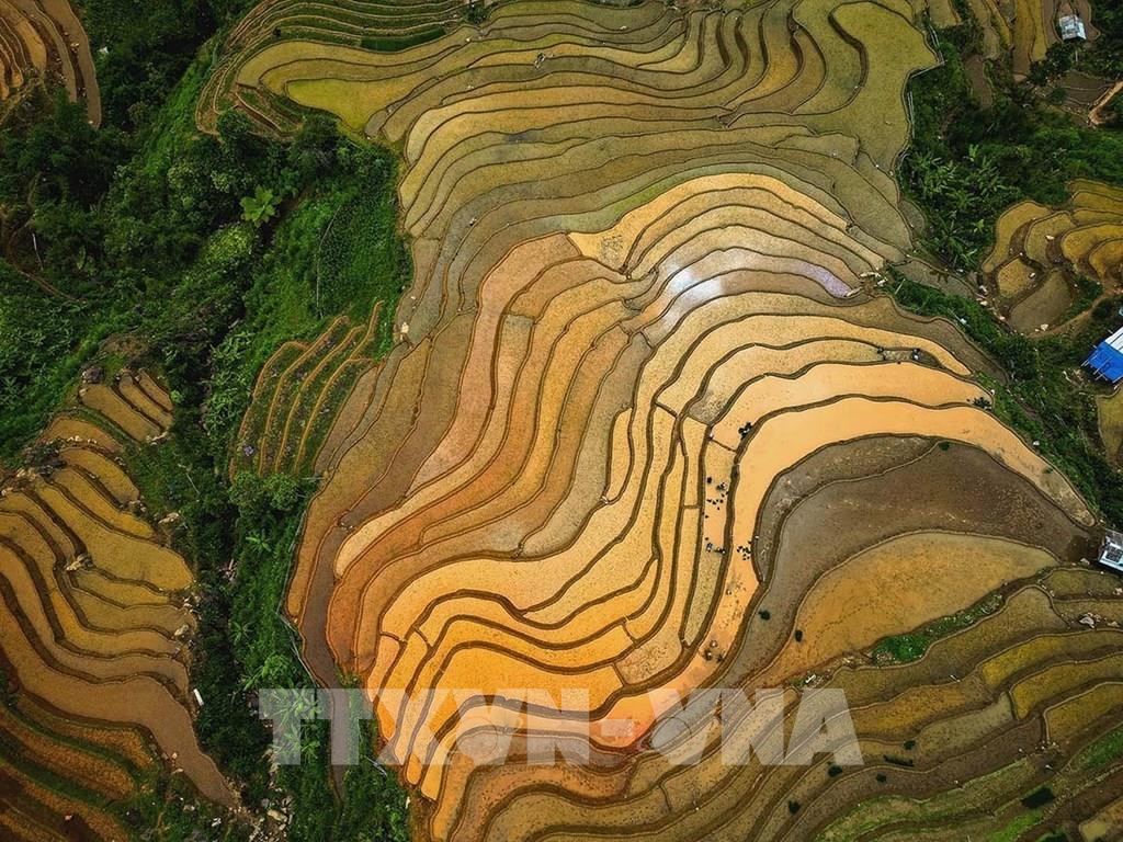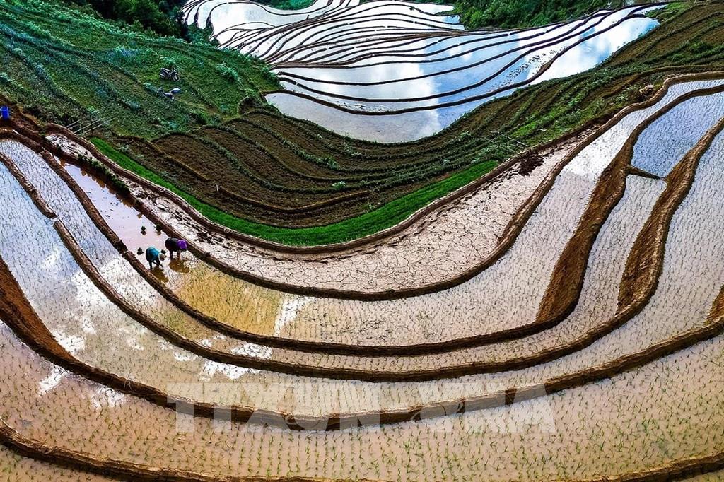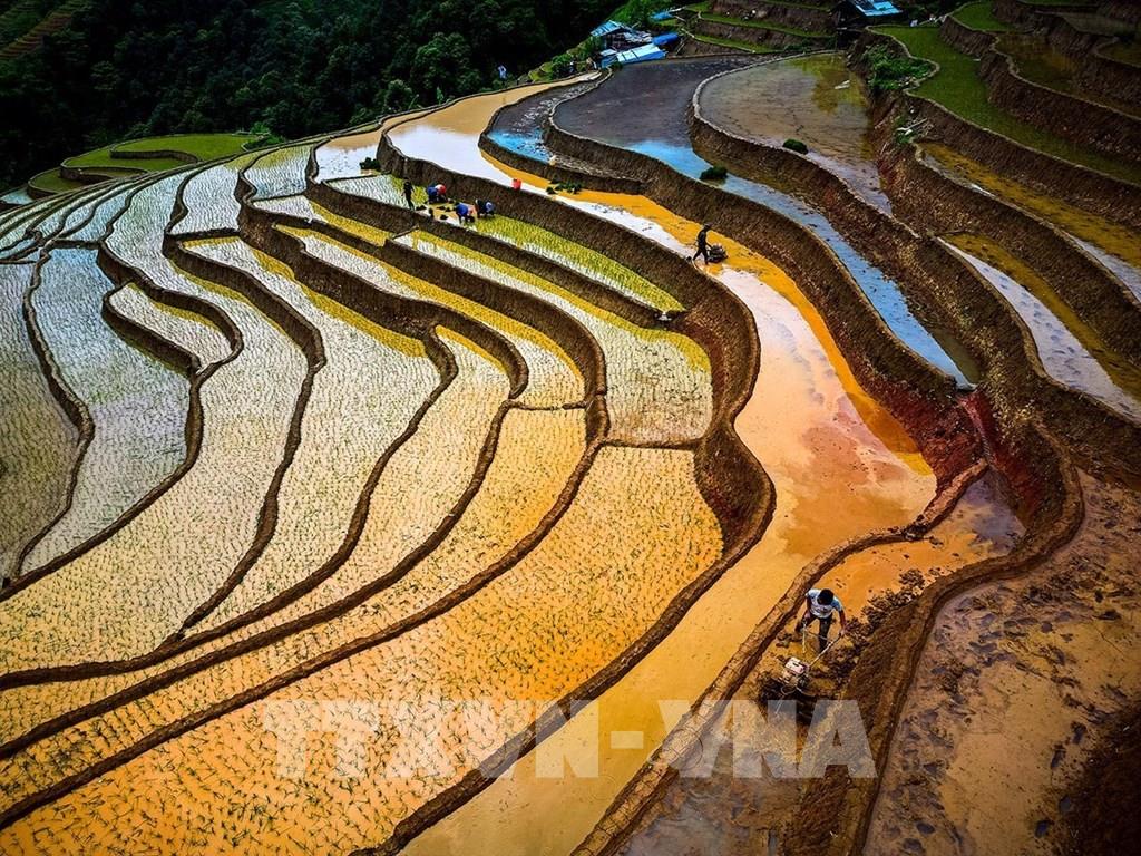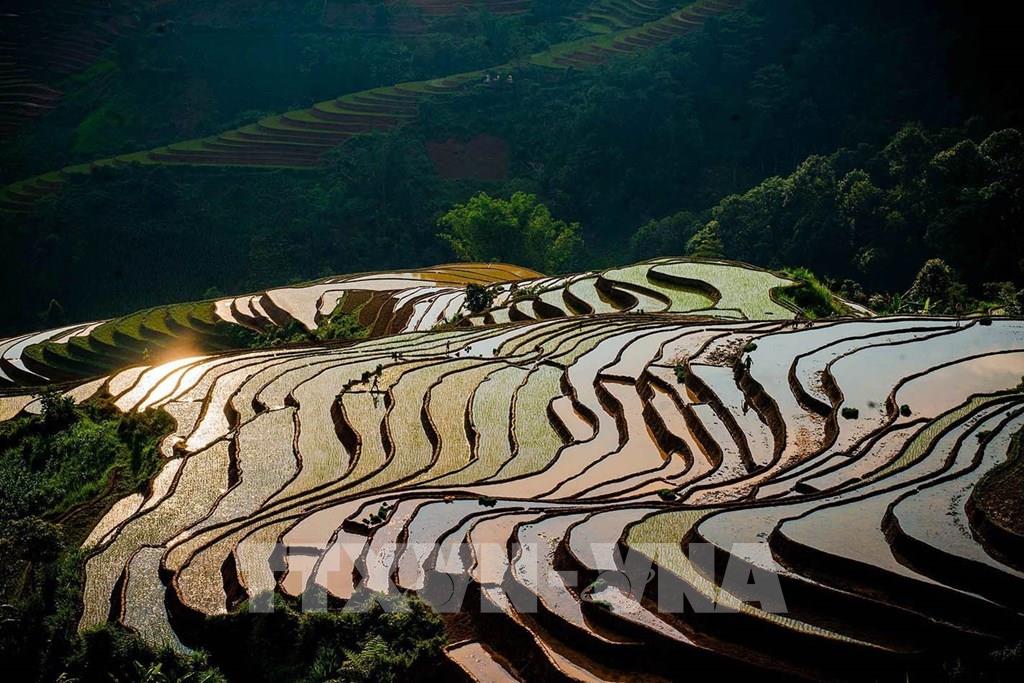 Vẻ đẹp của những thửa ruộng bậc thang mùa nước đổ tại xã Lao Chải (huyện Mù Cang Chải, tỉnh Yên Bái). Ảnh: Khánh Hoà – TTXVN