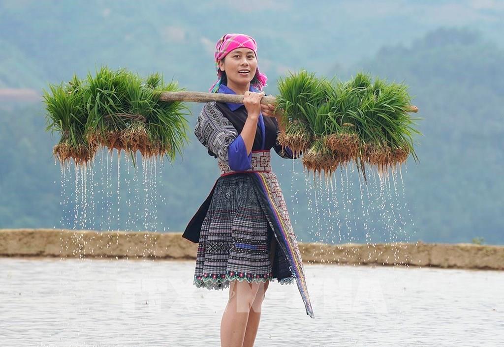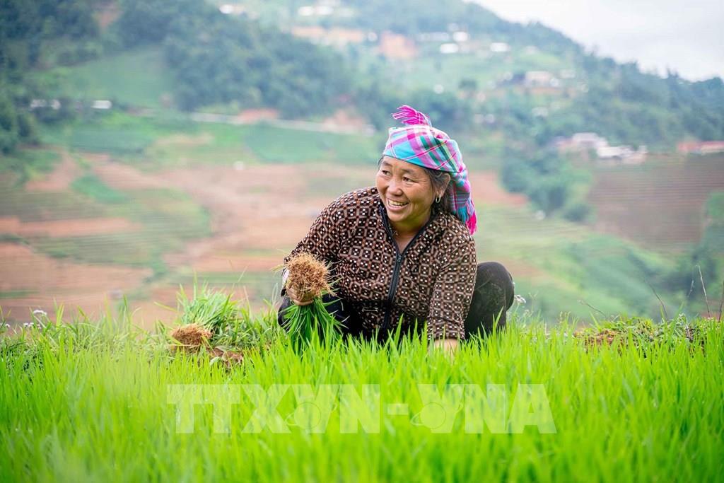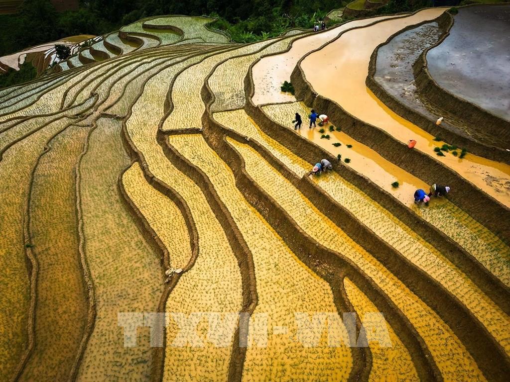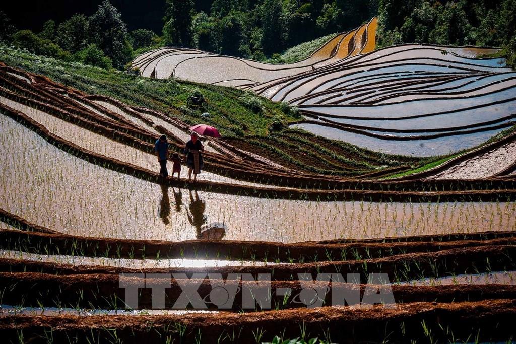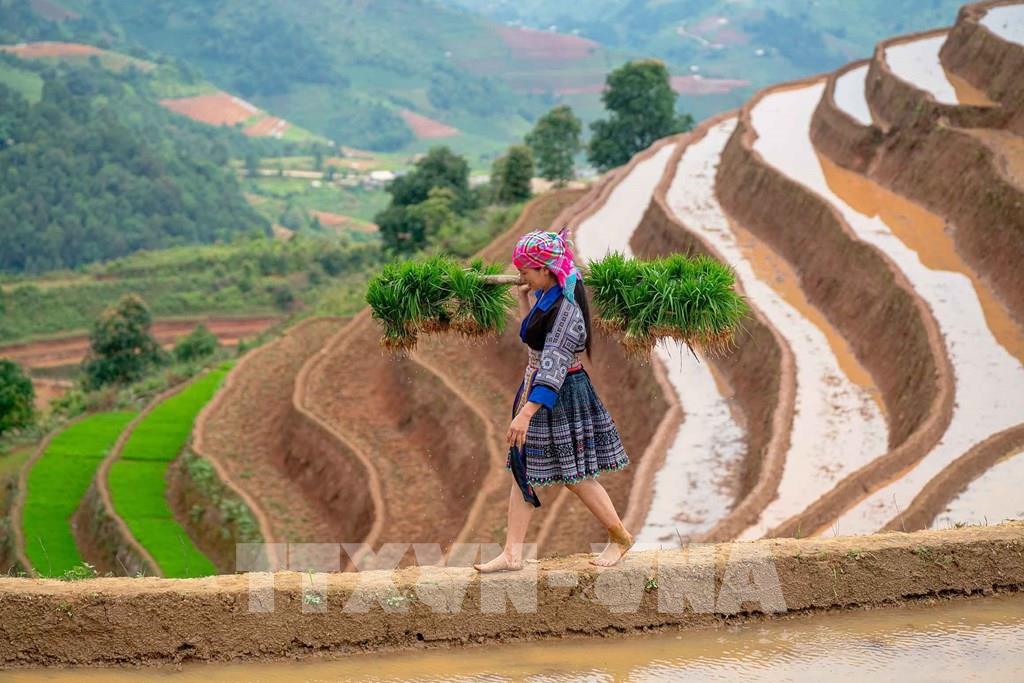 Mùa nước đổ cũng là thời điểm người dân Mù Cang Chải bắt đầu vào vụ lúa mới. Ảnh: Khánh Hoà - TTXVN