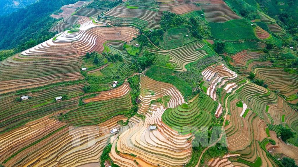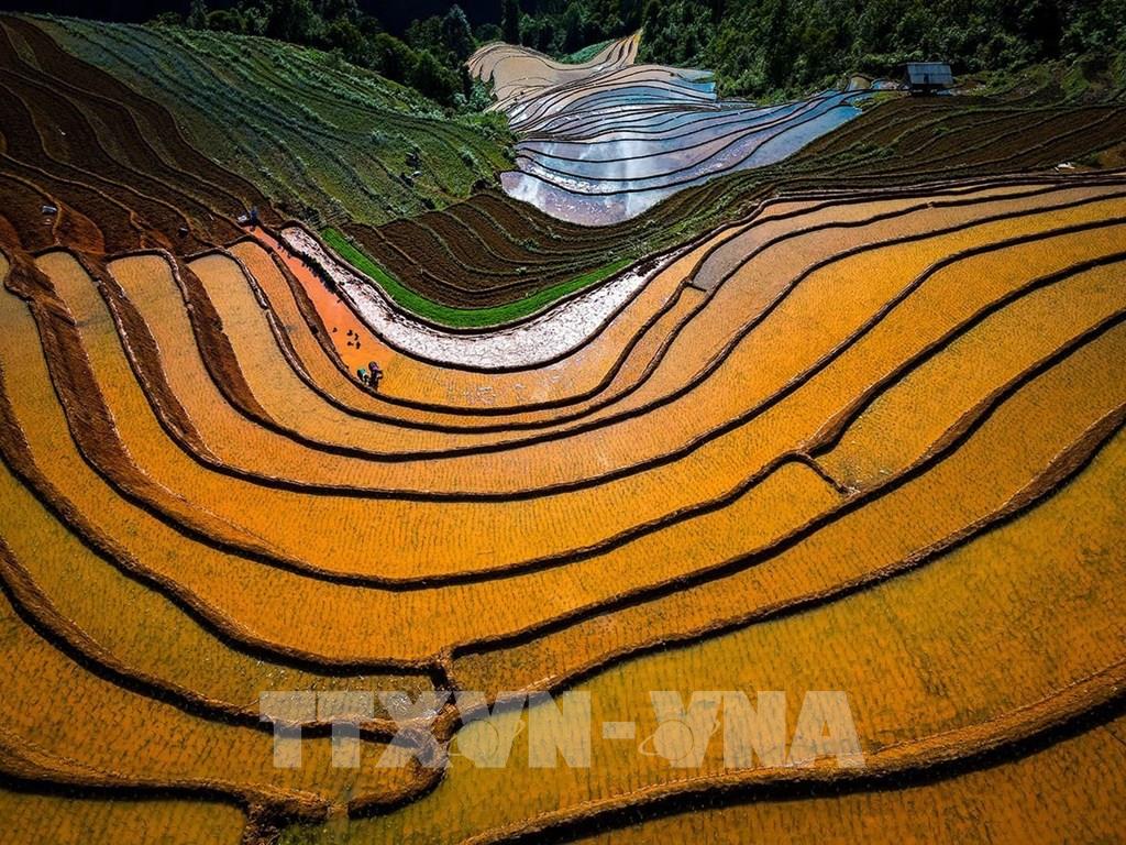 Vẻ đẹp của những thửa ruộng bậc thang ở xã Mồ Dề (huyện Mù Cang Chải, tỉnh Yên Bái). Ảnh: Khánh Hoà – TTXVN