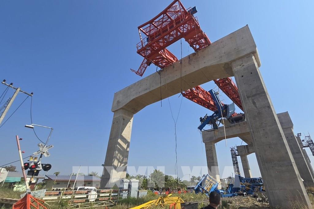 Ngày 14/1/2026, một vụ tai nạn đường sắt nghiêm trọng đã xảy ra huyện Sikhio, tỉnh Nakhon Ratchasima, Đông Bắc Thái Lan, khiến ít nhất 32 người thiệt mạng và 66 người bị thương. Tai nạn xảy ra khi một cần cẩu đang được sử dụng để xây dựng cầu đường sắt cao tốc bất ngờ đổ sập trúng vào đoàn tàu đang trong hành trình đến tỉnh Ubon Ratchathani. Sự cố khiến tàu bị trật bánh, gây hỏa hoạn và nhiều vật liệu xây dựng rơi xuống các toa tàu, cản trở lưu thông. Ảnh: THX/TTXVN