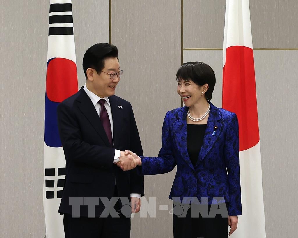 Tại cuộc hội đàm ở thành phố Nara, miền Tây Nhật Bản ngày 13/1/2026, Thủ tướng Nhật Bản Sanae Takaichi và Tổng thống Hàn Quốc Lee Jae Myung nhất trí thúc đẩy hợp tác an ninh - kinh tế song phương. Ảnh: Yonhap/TTXVN