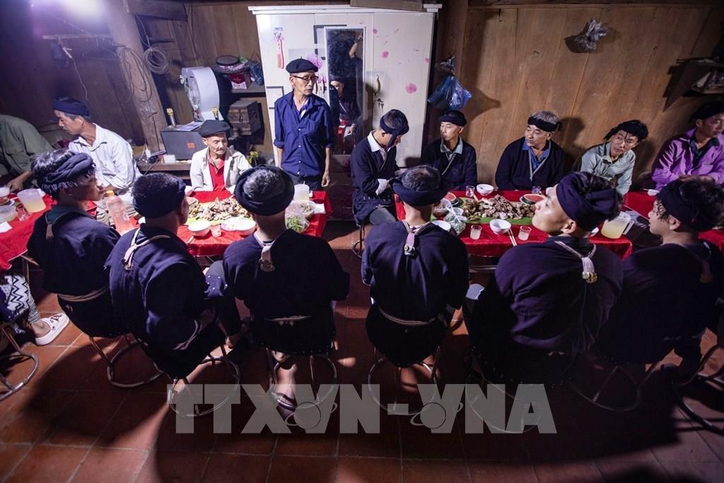 Chú rể sẽ mặc trang phục truyền thống, dâng rượu và lạy 12 lạy trước tổ tiên bên nhà gái để xin đón dâu. Nhà gái trao “nhân khẩu” của cô dâu cho nhà trai sau đó sẽ là tiệc mừng. Ảnh: Trọng Đạt - TTXVN