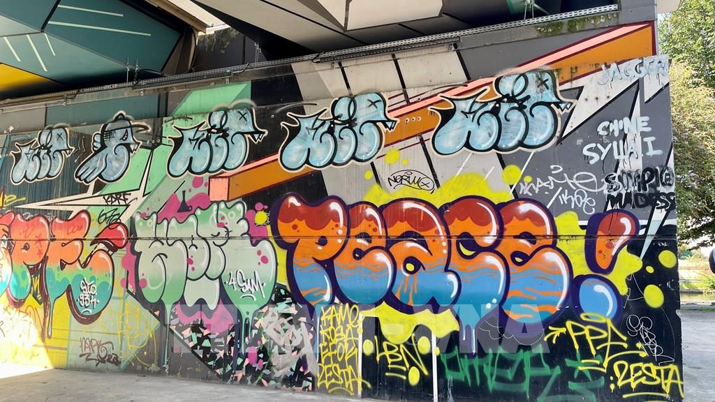 Các tác phẩm bích họa khổng lồ và tranh vẽ trên tường các tòa nhà, ở chân các cây cầu bê tông mang lại một nét đẹp độc đáo cho Street Art Avenue. Ảnh: Thu Hà - P/v TTXVN