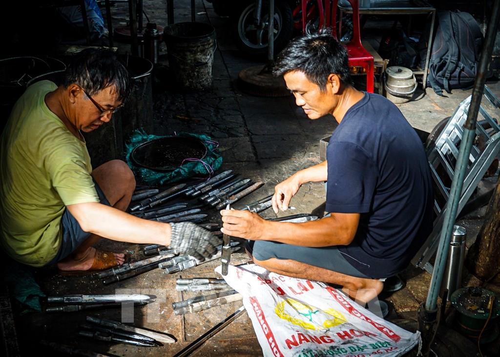 Các sản phẩm sau khi sửa chữa được tôi bằng dầu, nước... tùy theo chất liệu, nhu cầu. Ảnh: Khánh Hòa - TTXVN
