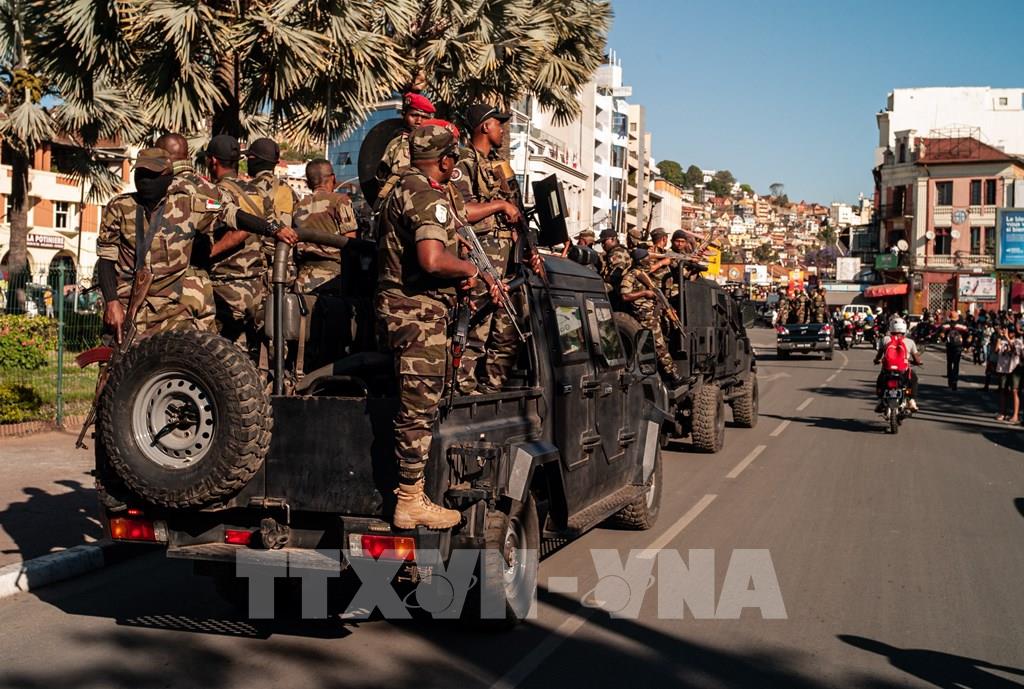 Một đơn vị tinh nhuệ của quân đội Madagascar ngày 14/10/2025 tuyên bố đã giành quyền kiểm soát đất nước, ngay sau khi Quốc hội bỏ phiếu luận tội Tổng thống Andry Rajoelina. Đại tá Michael Randrianirina - người đứng đầu Đơn vị Hành chính và Kỹ thuật (CAPSAT), đơn vị đứng đầu quân đội Madagascar, đã đọc tuyên bố tại Dinh Tổng thống, thông báo đình chỉ Hiến pháp và thành lập một ủy ban điều hành lâm thời với đại diện của quân đội, hiến binh và cảnh sát quốc gia. Phủ Tổng thống Madagascar lập tức lên án hành động này, gọi đó là “một âm mưu đảo chính”, đồng thời khẳng định Tổng thống Rajoelina vẫn tại vị. Ảnh: AA/TTXVN