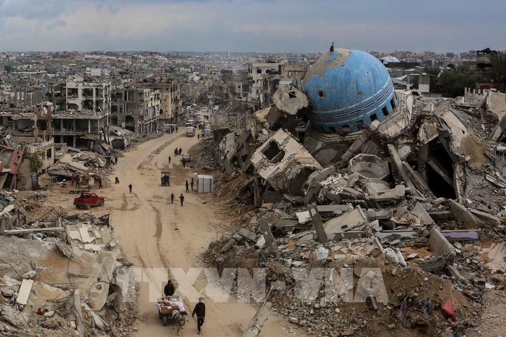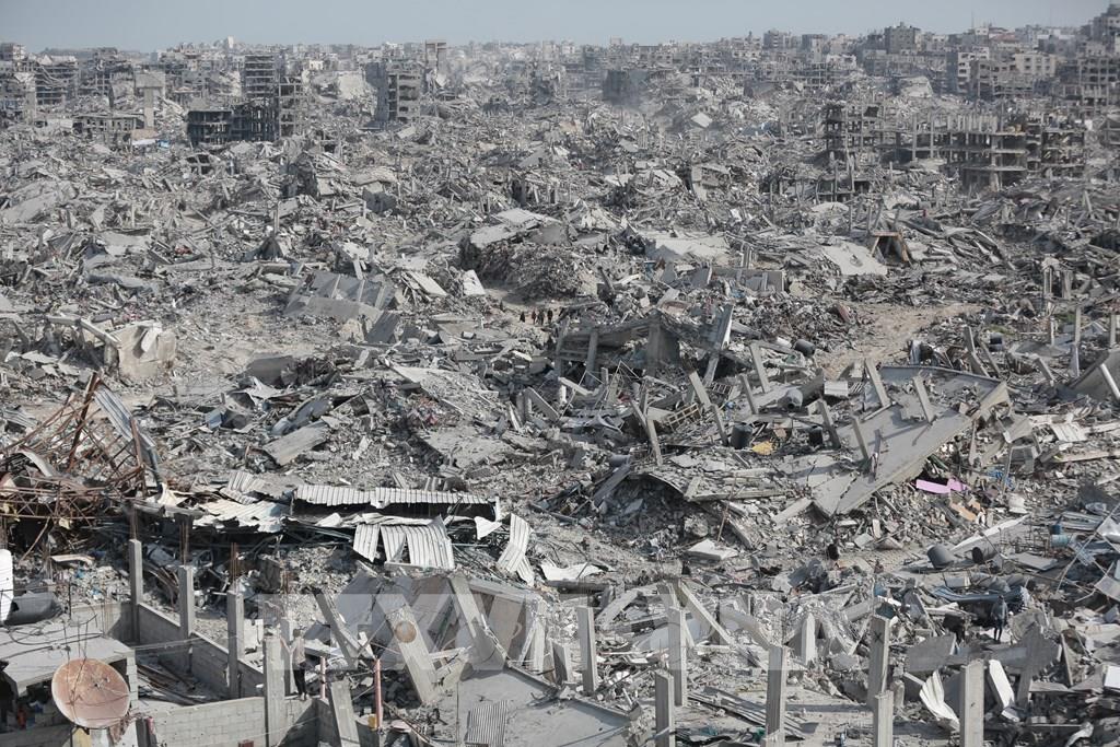 Thủ tướng Chính quyền Palestine (PA) Mohammed Mustafa đã trình bày kế hoạch tái thiết Dải Gaza với tổng kinh phí lên tới 65 tỷ USD trong cuộc gặp với các quan chức Liên hợp quốc (LHQ) và giới ngoại giao tại Ramallah ngày 16/10/2025. Ông Mustafa khẳng định PA sẽ hoạt động hoàn toàn tại Gaza trong vòng 12 tháng tới. Kế hoạch 5 năm được xây dựng gồm ba giai đoạn, bao phủ 18 lĩnh vực từ nhà ở, giáo dục đến quản trị. Trong ảnh: Cảnh tàn phá do xung đột tại Dải Gaza. Ảnh: THX/TTXVN
