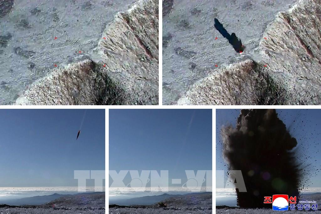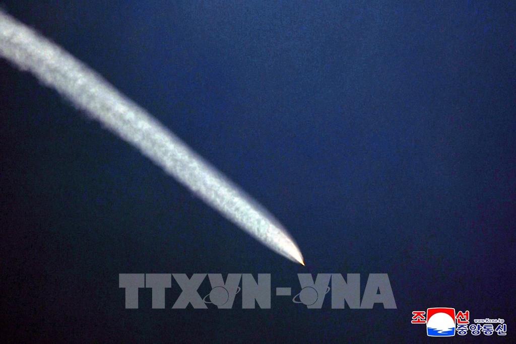 Triều Tiên ngày 23/10/2025 tuyên bố đã phóng thử thành công 2 tên lửa siêu vượt âm, coi đây là “hệ thống vũ khí quan trọng mới” giúp củng cố “năng lực răn đe chiến lược trước các đối thủ tiềm tàng” của Bình Nhưỡng. Hãng thông tấn trung ương Triều Tiên (KCNA) đưa tin “2 tên lửa siêu vượt âm được phóng từ quận Ryokpho, thủ đô Bình Nhưỡng, theo hướng Đông Bắc, đã đánh trúng mục tiêu định sẵn tại vùng cao nguyên Kwesang ở tỉnh Bắc Hamgyong”. Ảnh: YONHAP/TTXVN