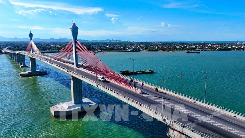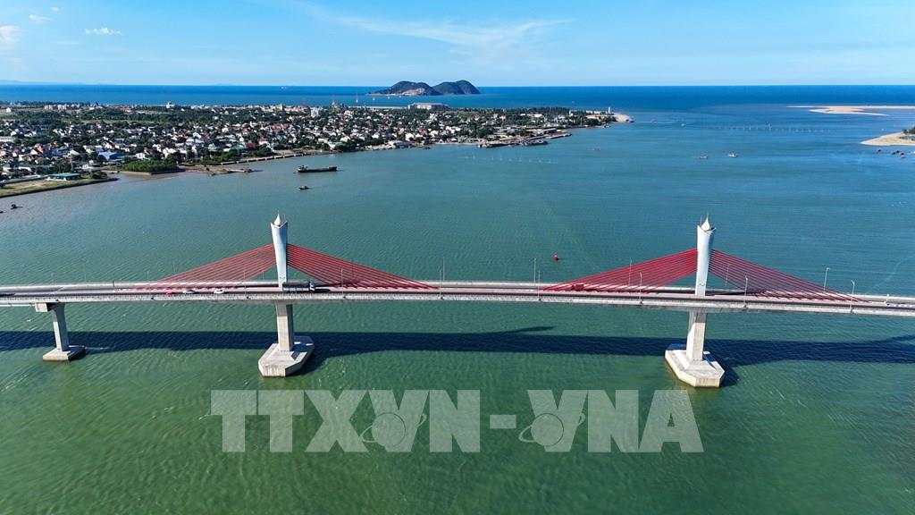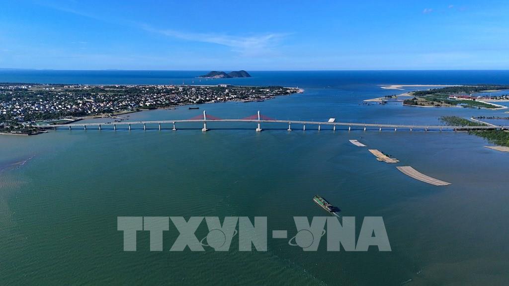 Cầu Cửa Hội có tổng chiều dài tuyến là 5,271 km; chiều rộng cầu nhịp chính 18,5m. Ảnh: Hữu Quyết – TTXVN