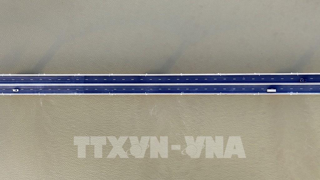 Cầu Hưng Đức nằm trên tuyến cao tốc Diễn Châu – Bãi Vọt là cây cầu dài nhất trong hệ thống đường cao tốc Bắc – Nam với chiều dài gần 4,1km. Ảnh: Hữu Quyết – TTXVN