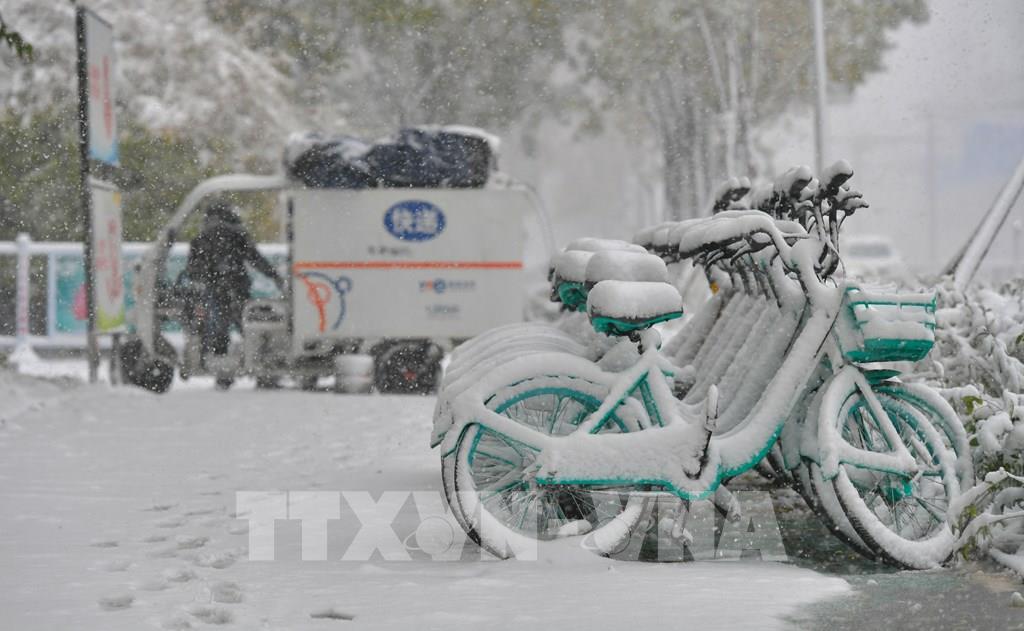 Tuyết phủ dày đặc tại Thẩm Dương, tỉnh Liêu Ninh, Trung Quốc, ngày 6/11/2023. Ảnh: THX/TTXVN
