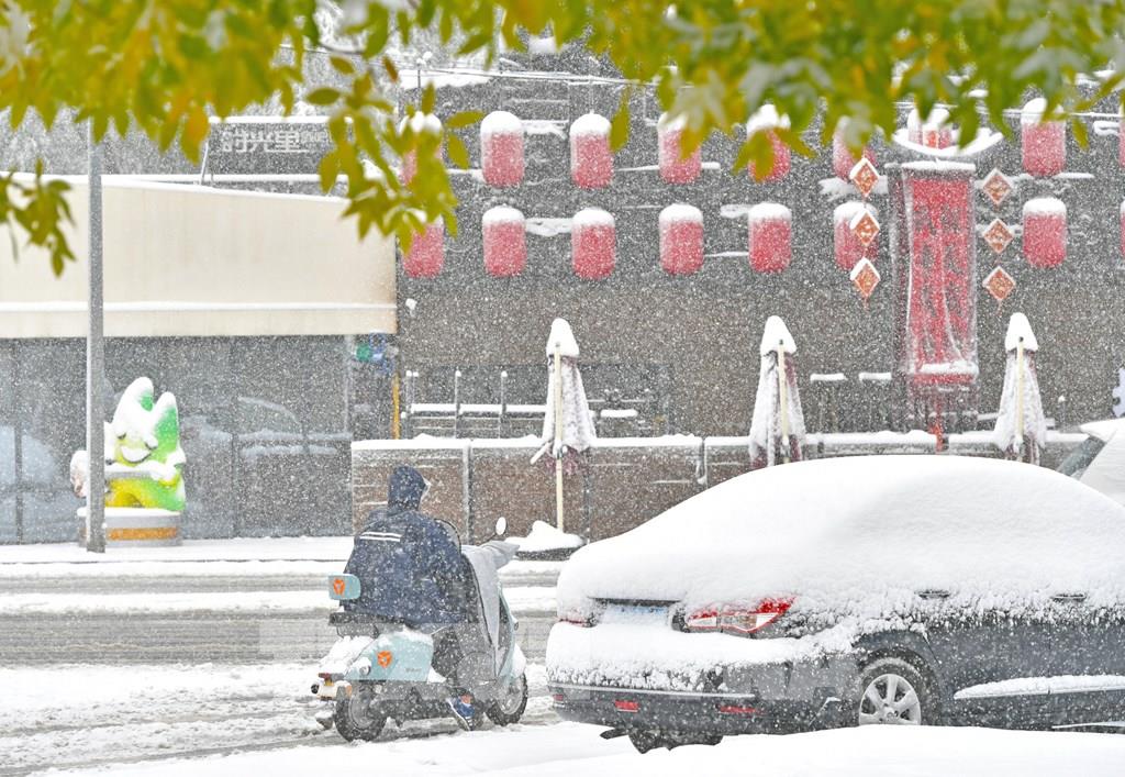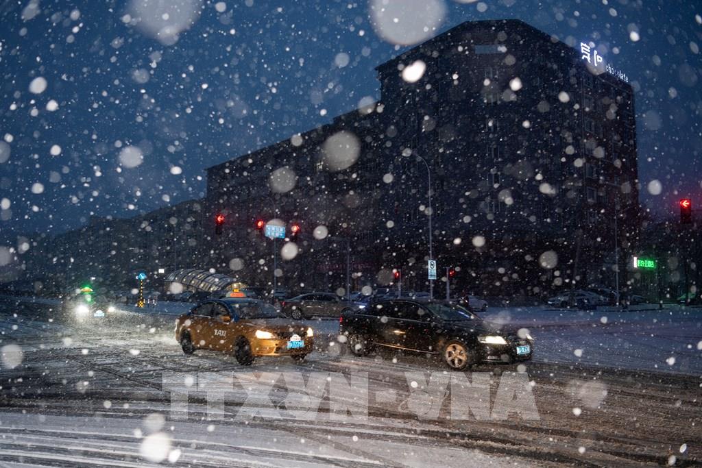 Tuyết rơi dày đặc tại Thẩm Dương, tỉnh Liêu Ninh, Trung Quốc, ngày 6/11/2023. Ảnh: THX/TTXVN