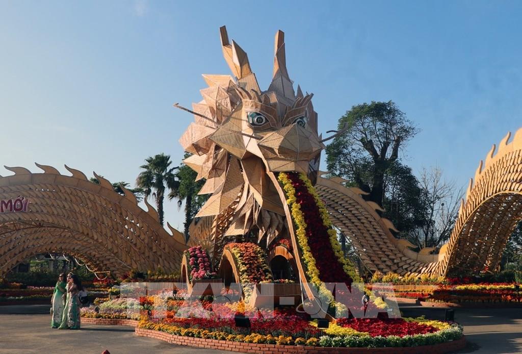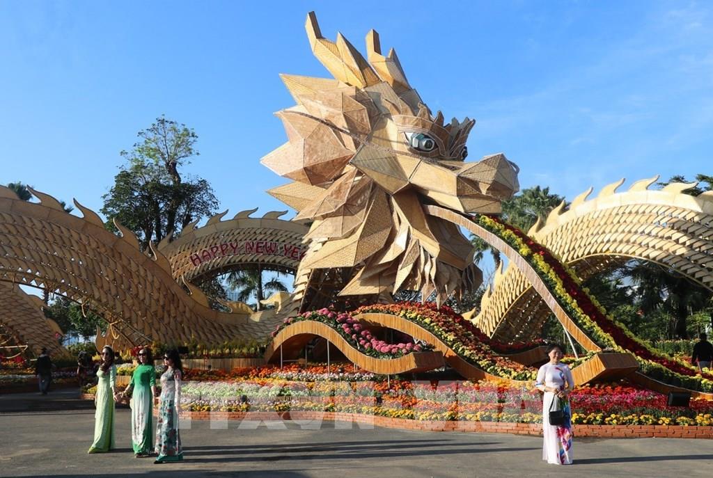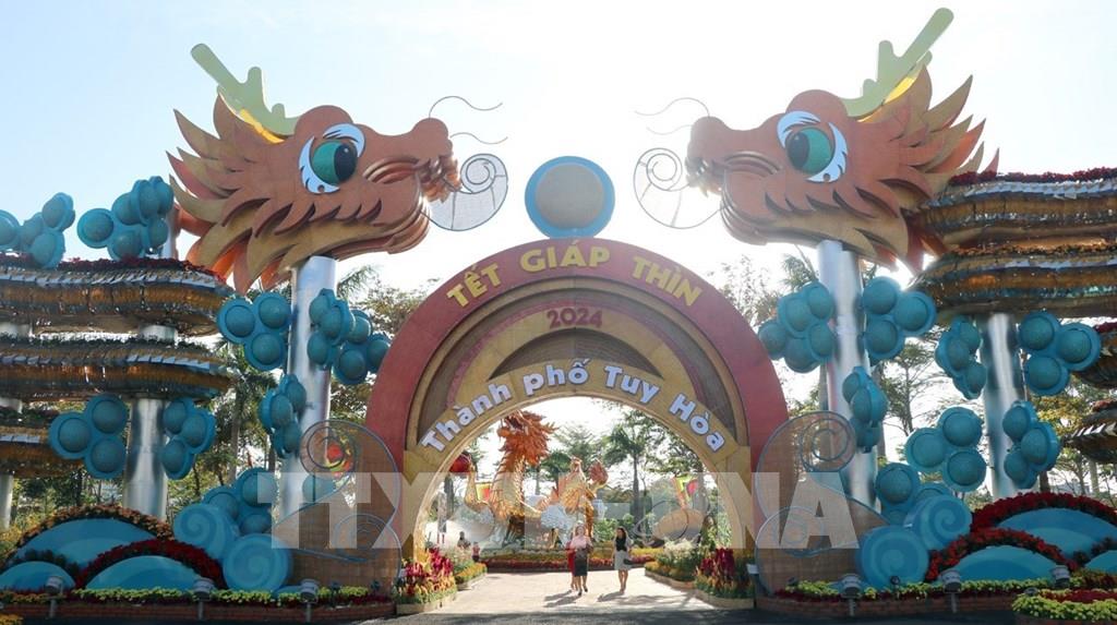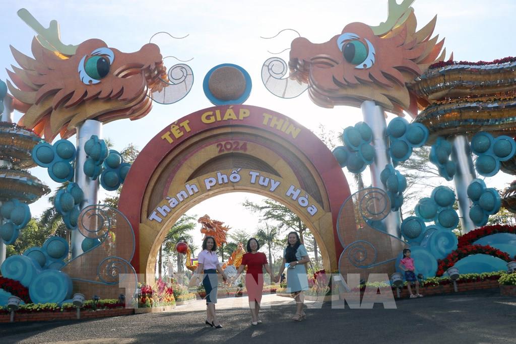 Nhiều du khách đến tham quan đường hoa xuân Giáp Thìn 2024 tại công viên Thanh thiếu nhi ở thành phố Tuy Hòa, tỉnh Phú Yên đều rất thích thú với khung cảnh thiên nhiên gần gũi và tác phẩm điêu khắc linh vật rồng mang nhiều ý nghĩa.