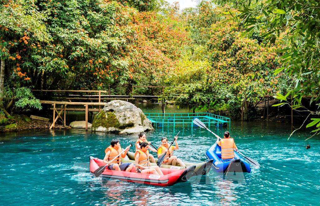 09:04' - 25/03/2023Suối nước Moọc là một trong những điểm đến nổi tiếng và hấp dẫn mỗi khi đến với Phong Nha – Kẻ Bàng (Quảng Bình). Thời điểm tháng 3, suối nước Moọc được tô điểm bởi sắc màu hoa Vàng Anh nở rộ, tươi thắm toả sắc bên bờ suối với hương thơm thoang thoảng, dịu nhẹ gây thương nhớ trong lòng du khách. Mùa hoa Vàng Anh ở điểm du lịch suối nước Moọc thực sự là thời điểm hấp dẫn và lý tưởng, mang đến những trải nghiệm khó quên cho mỗi người khi đến Quảng Bình.