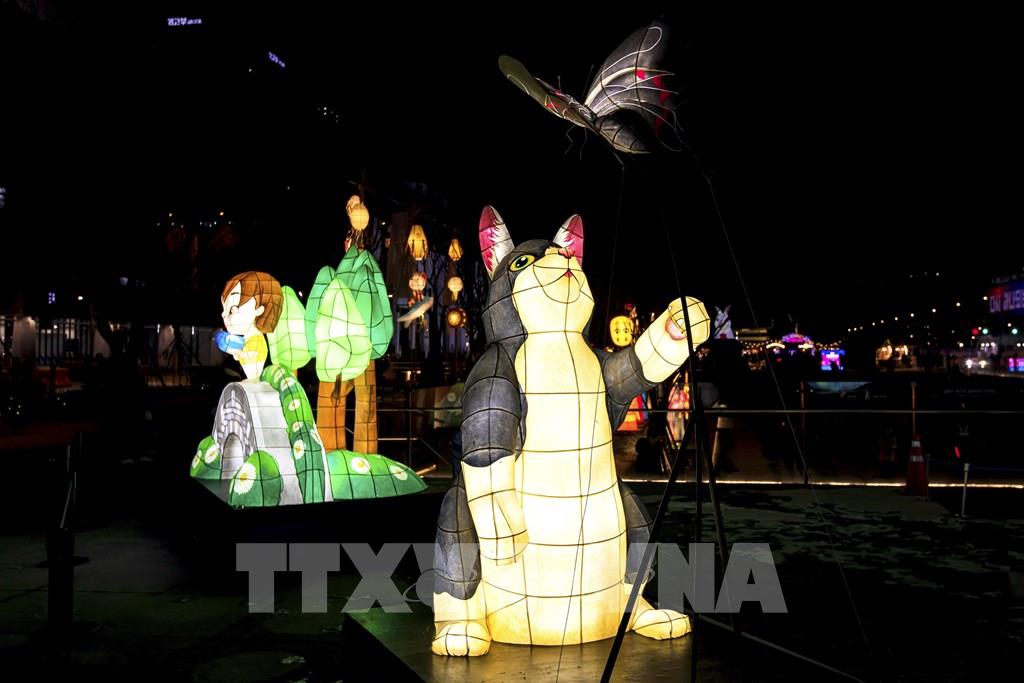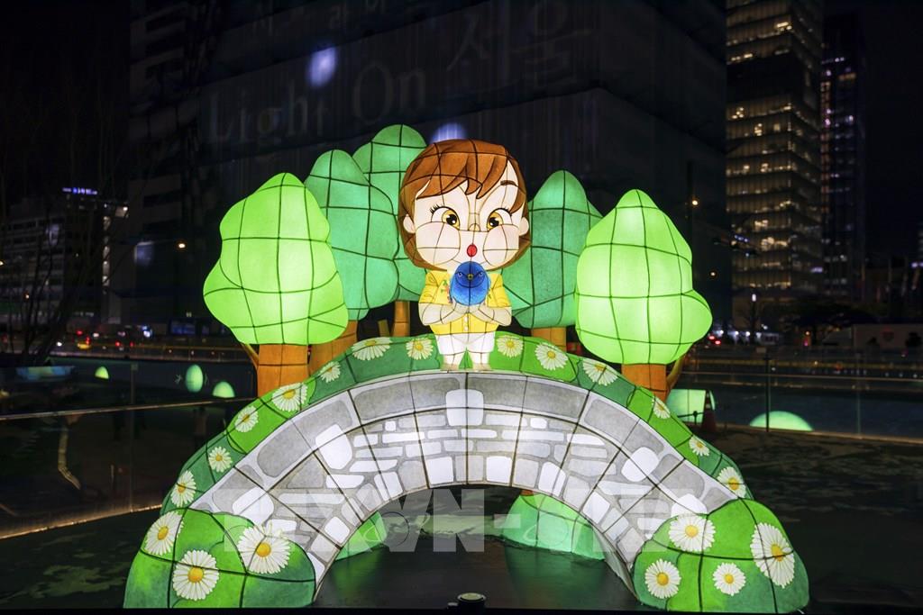 Đèn lồng các nhân vật hoạt hình được ưa thích ở Hàn Quốc đang thả tim. Ảnh: Anh Nguyên - PV TTXVN