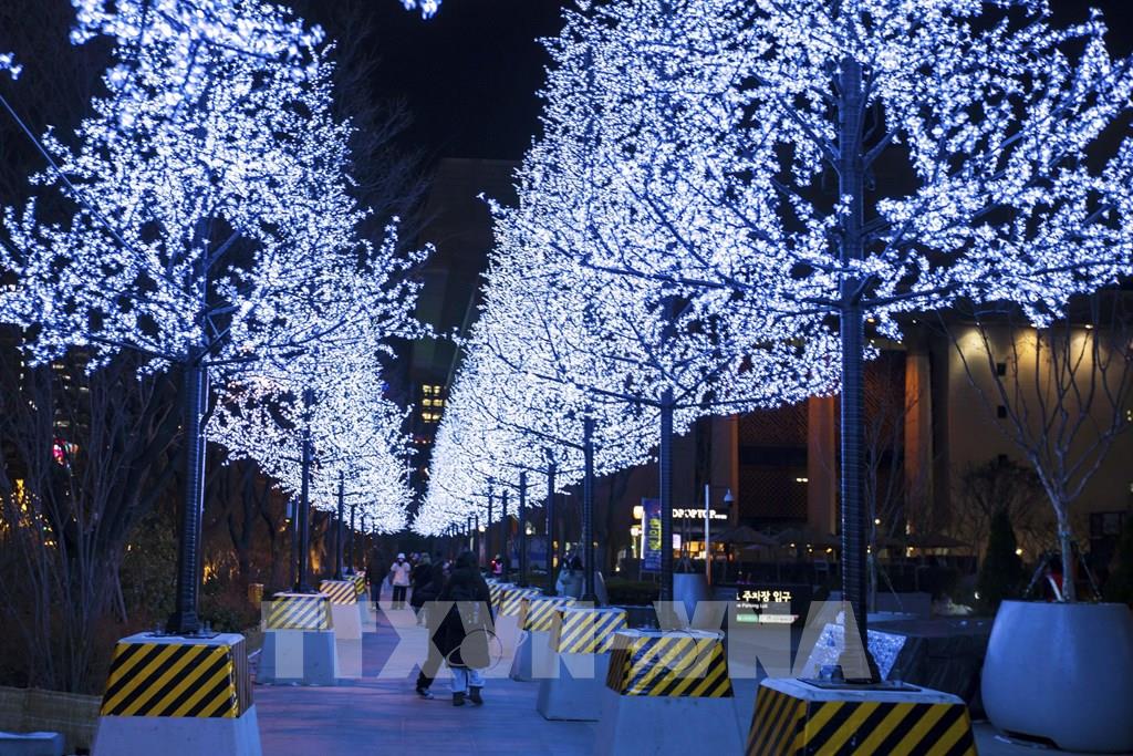 "Khu vườn ánh sáng" với các cây thông gắn đèn led cao 8 m trong khuôn viên Công viên Sejong. Ảnh: Anh Nguyên - PV TTXVN