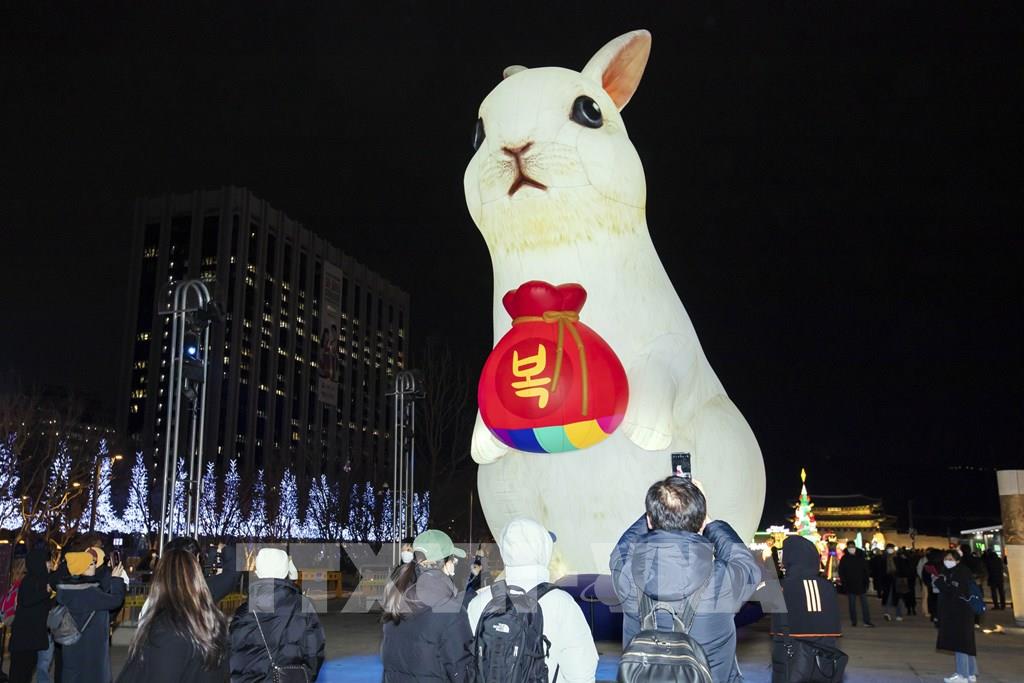 Đèn lồng "Thỏ may mắn" cao 12m gửi thông điệp hy vọng cho người dân Xứ sở Kim Chi trong năm mới Quý Mão 2023.Ảnh: Anh Nguyên - PV TTXVN