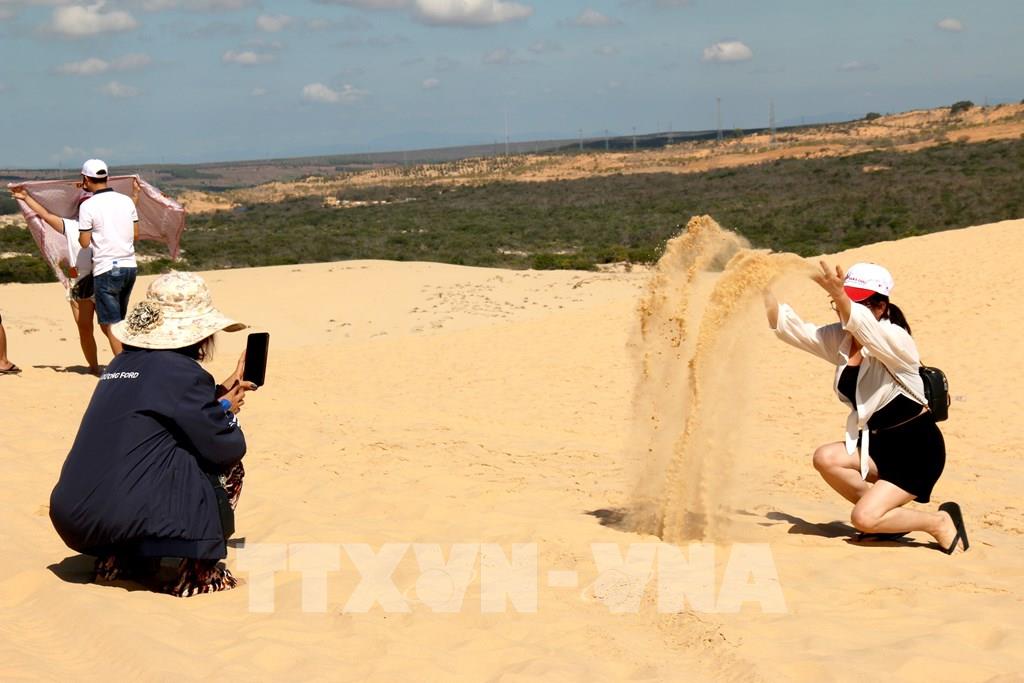 Du khách thích thú với điểm đến đồi cát Bàu Trắng với khung cảnh hoang sơ và cực kỳ ấn tượng.