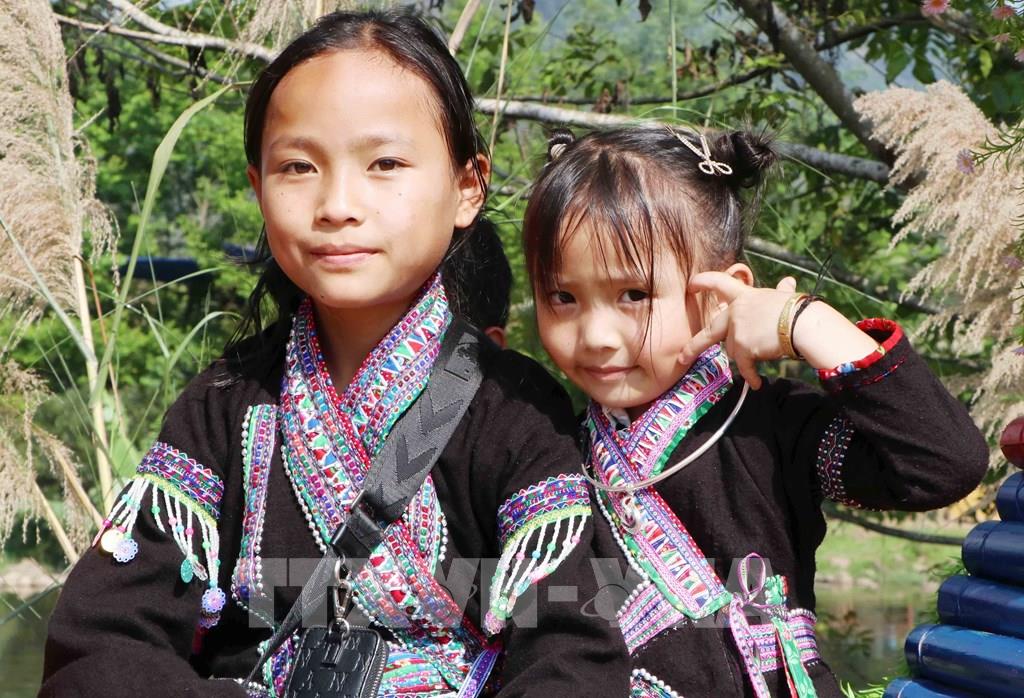 Ngay từ nhỏ, trẻ em dân tộc Lào được người lớn cho mặc trang phục truyền thống của người Lào. Ảnh: Nguyễn Oanh-TTXVN