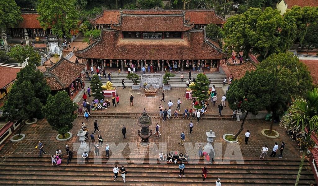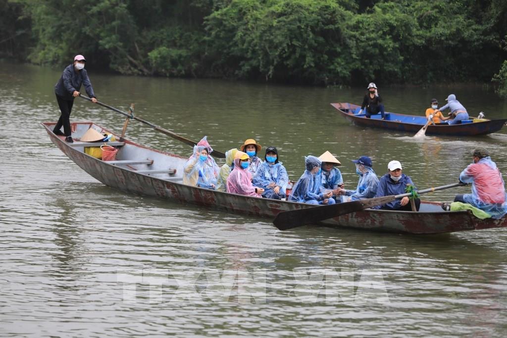 Chùa Thiên Trù nhộn nhịp trong ngày chùa Hương chính thức mở cửa trở lại. Ảnh: Thành Đạt - TTXVN