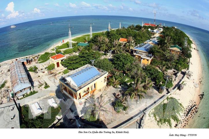 Tác phẩm “Đảo Sơn Ca” của tác giả Huy Hùng, Ban Biên tập Ảnh, TTXVN trưng bày tại triển lãm. Ảnh: Thanh Vũ – TTXVN