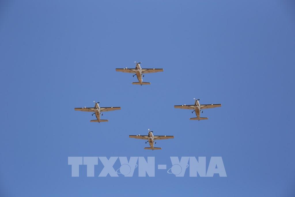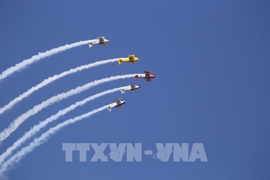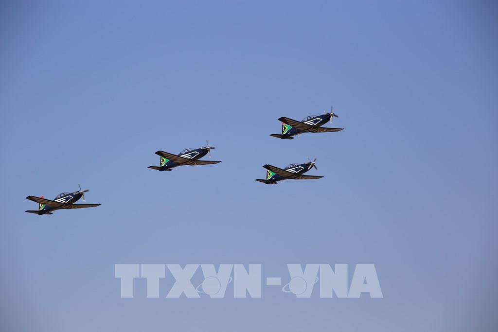 Màn trình diễn trên không của quân đội Nam Phi tại triển lãm quốc phòng và hàng không vũ trụ khu vực châu Phi 2022 (AAD 2022). Ảnh: Hồng Minh - TTXVN