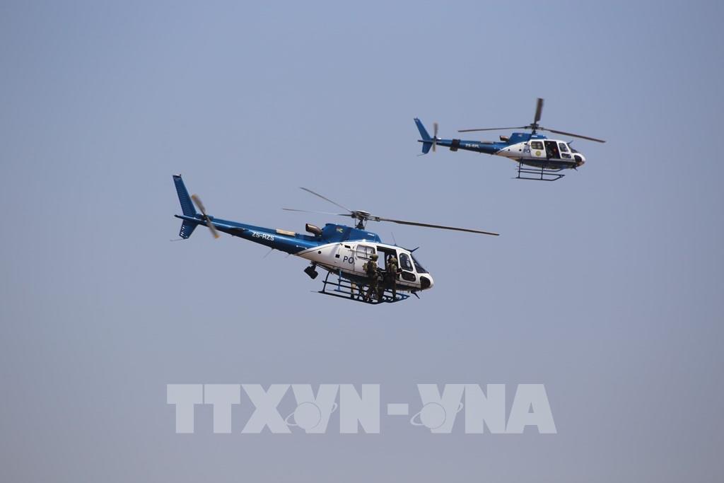 Trực thăng của lực lượng cảnh sát Nam Phi trình diễn tại triển lãm quốc phòng và hàng không vũ trụ khu vực châu Phi 2022 (AAD 2022). Ảnh: Hồng Minh - TTXVN