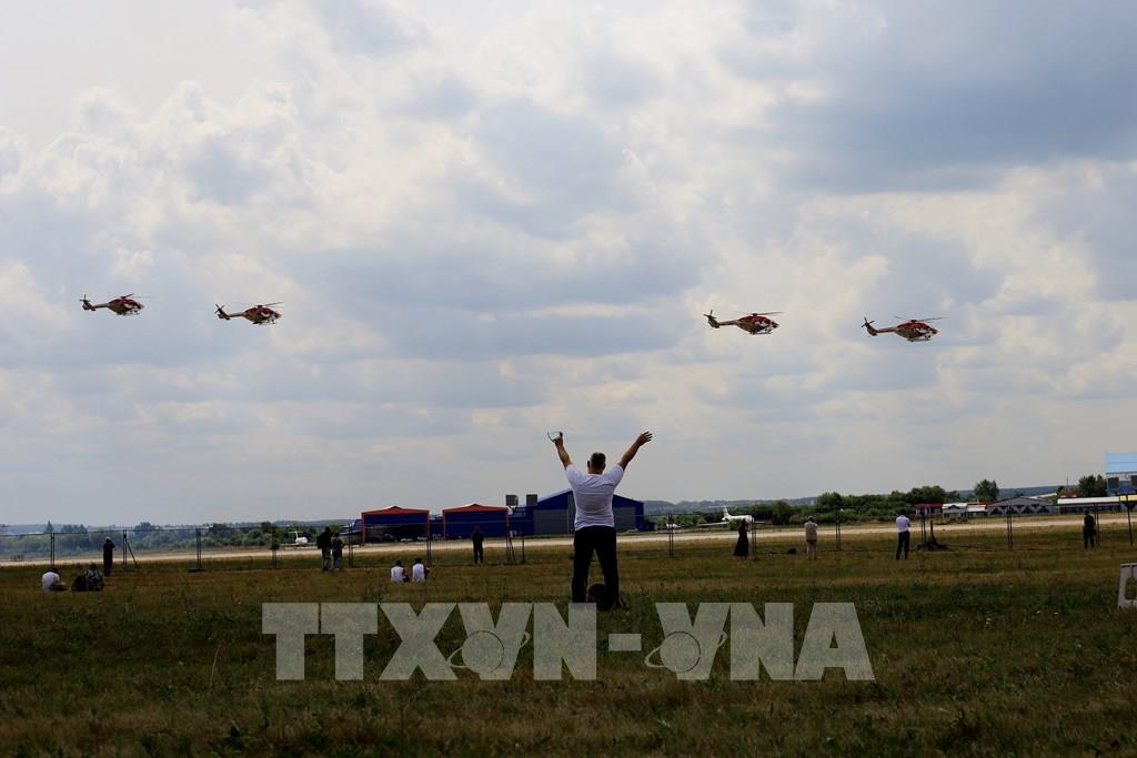 Màn trình diễn máy bay trực thăng tại triển lãm MAKS 2021. Ảnh: Trần Hiếu - PV TTXVN tại Nga