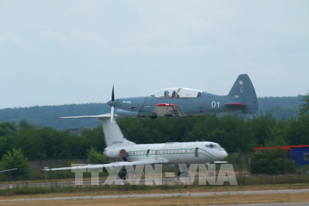 Máy bay huấn luyện Yak-142 tham gia trình diễn bay tại MAKS 2021. Ảnh: Duy Trinh - PV TTXVN tại Nga