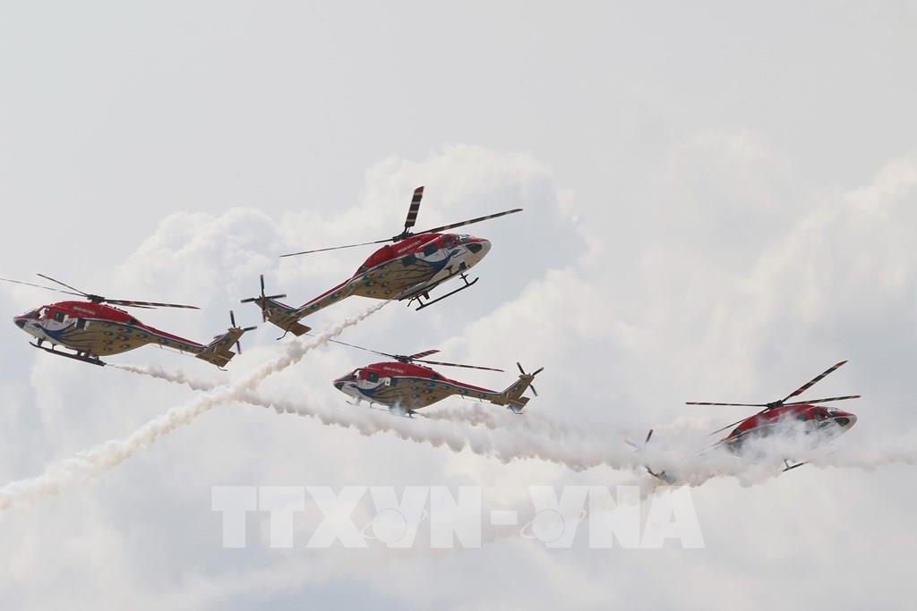 Đội bay trực thăng của Không quân Ấn Độ tham gia trình diễn tại MAKS 2021. Ảnh: Trần Hiếu - PV TTXVN tại Nga