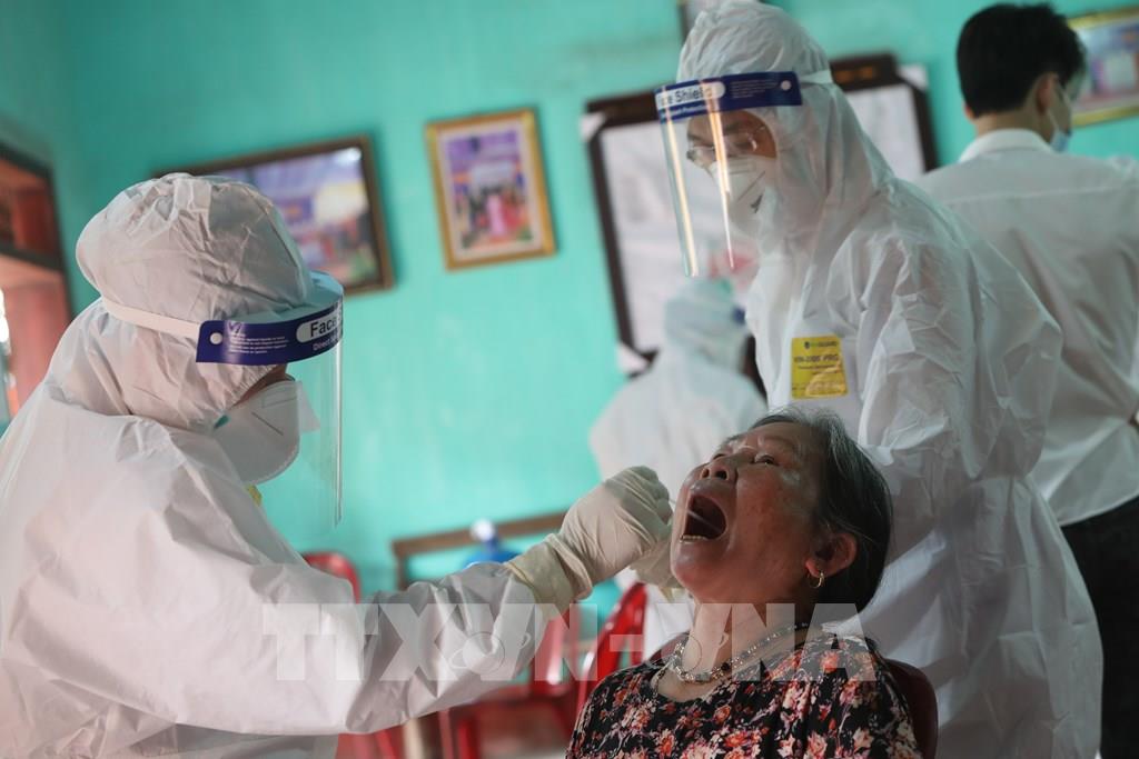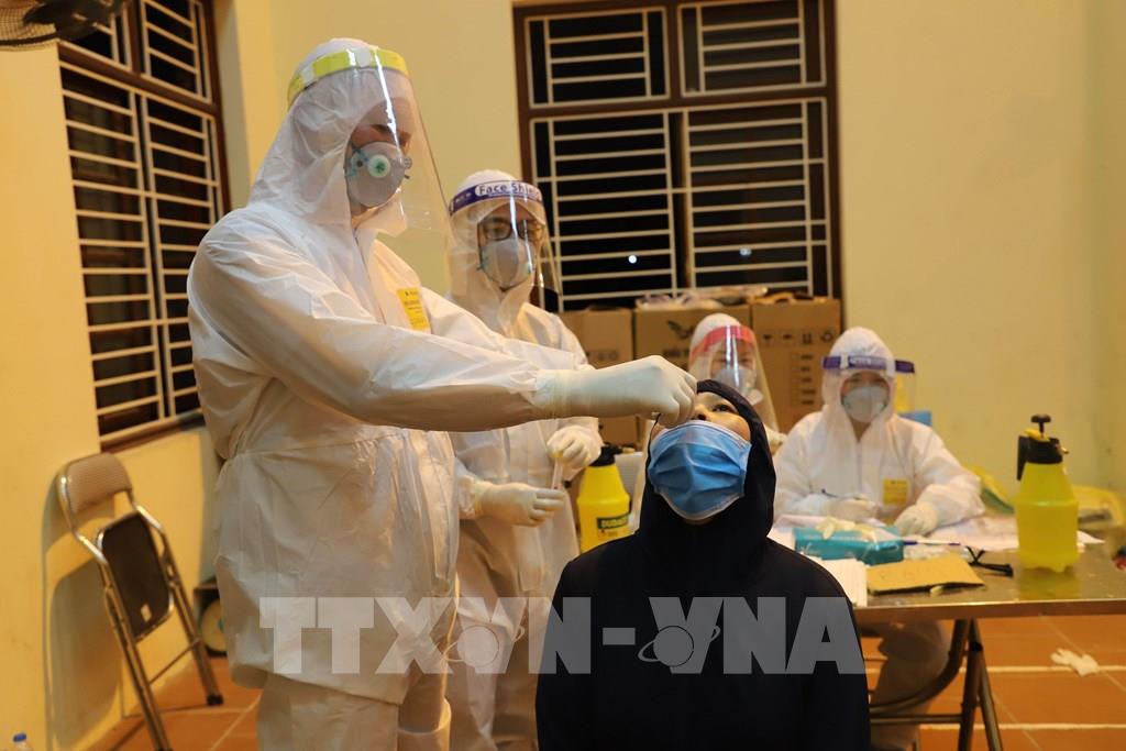 Lực lượng y, bác sĩ lấy mẫu xét nghiệm SARS-CoV-2 cho người dân tại xã Mão Điền, huyện Thuận Thành, tỉnh Bắc Ninh. Ảnh: TTXVN