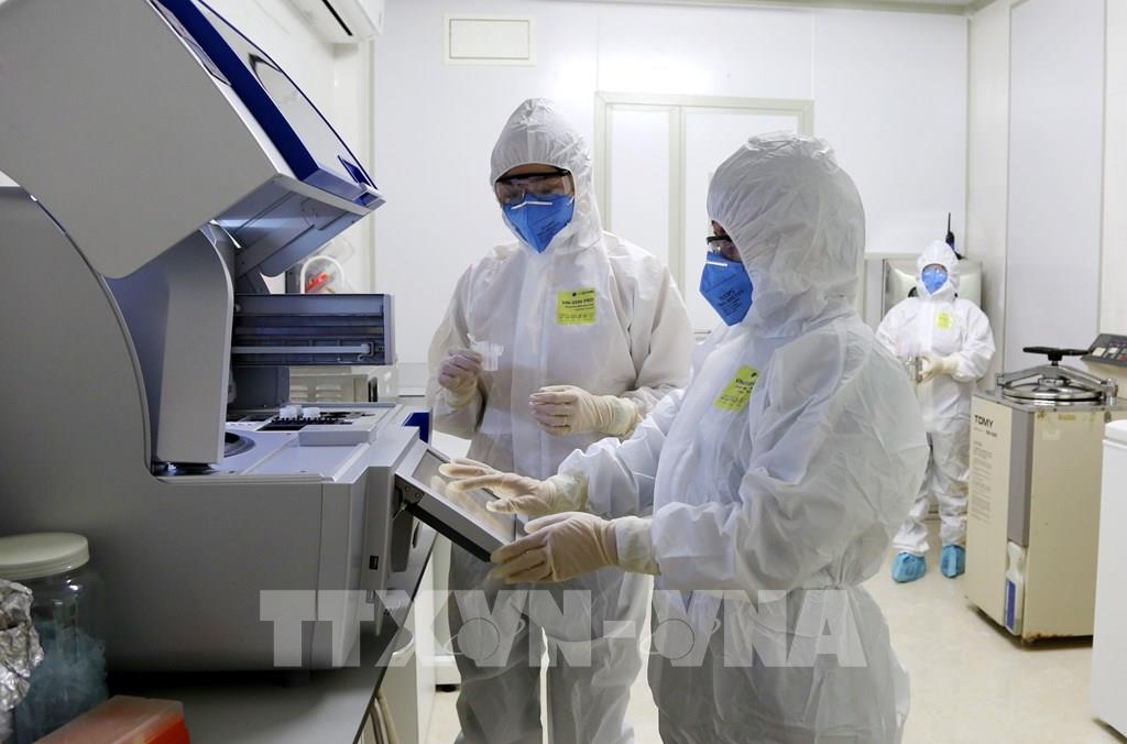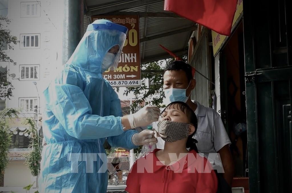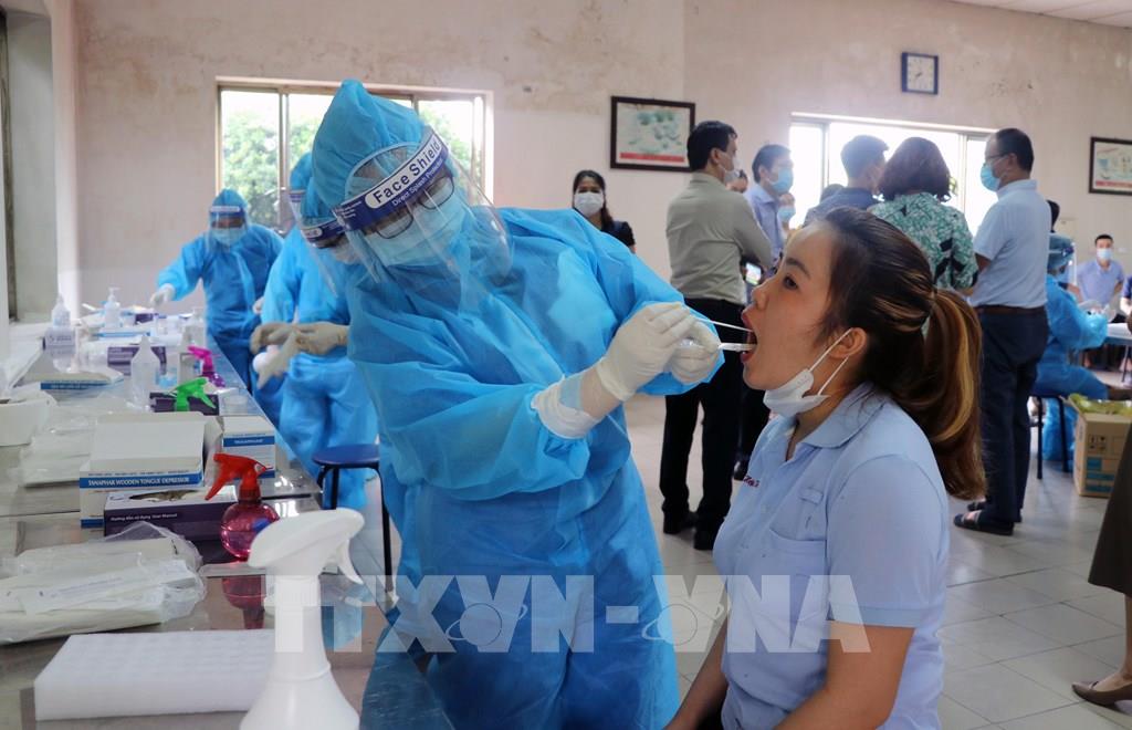 Lấy mẫu xét nghiệm cho 15.000 người dân, người lao động thường trú và tạm trú tại tổ dân phố My Điền 1. Ảnh: TTXVN