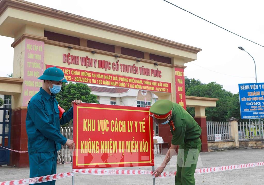 Bệnh viện Y Dược cổ truyền Vĩnh Phúc, xã Định Trung, thành phố Vĩnh Yên được cách ly y tế để phòng chống dịch COVID-19. Ảnh: Hoàng Hùng - TTXVN