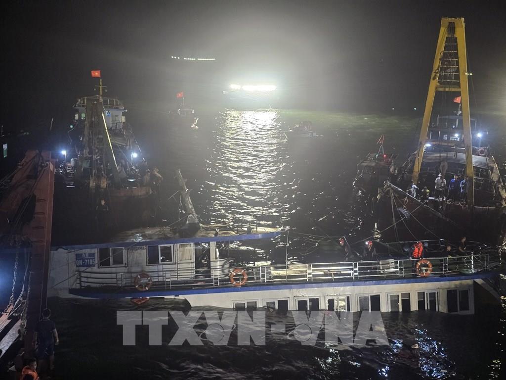 09:46' - 20/07/2025Sau thời gian nỗ lực của các lực lượng chức năng, vào lúc 2h02, ngày 20/7/2025, tàu Vịnh Xanh 58 mang biển kiểm soát QN-7105 đã được trục vớt thành công và được lai dắt vào bờ để các cơ quan chức năng tiếp tục điều tra. Đến thời điểm hiện tại, tổng số nạn nhân được tìm kiếm cứu nạn, cứu hộ là 47 người, trong đó có 10 người được cứu sống, 37 người tử vong (trong số này có 4 nạn nhân đang tiếp tục được xác minh danh tính).