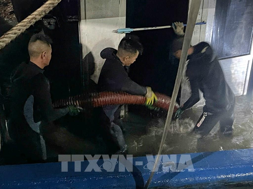 Trục vớt và đưa tàu bị lật trên vịnh Hạ Long về bờ
